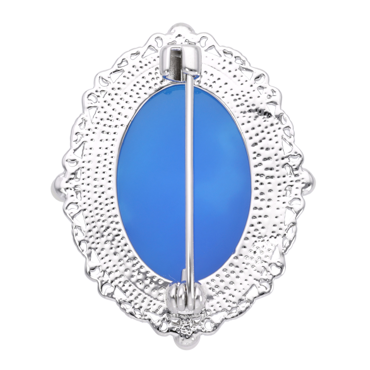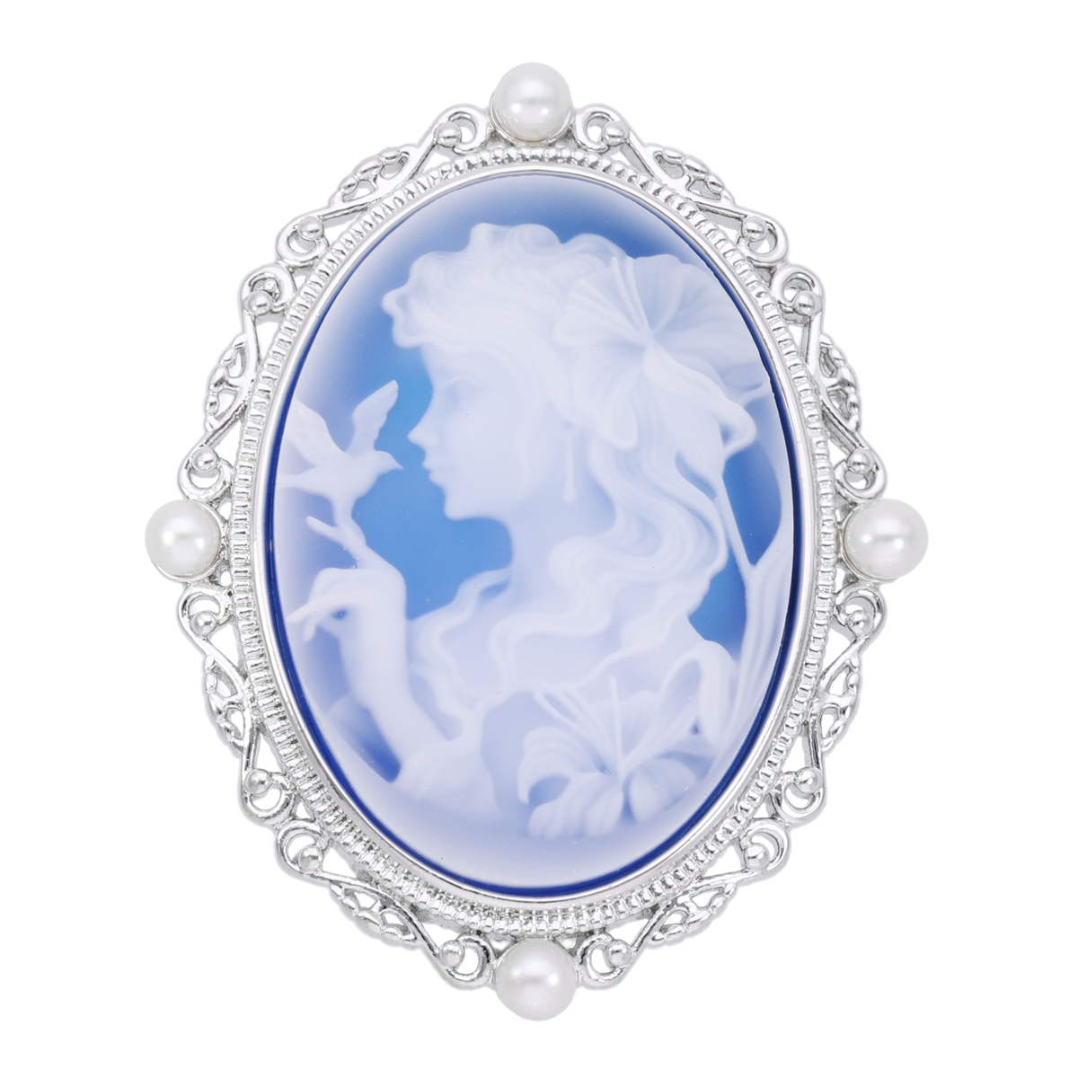 美しいブルーとホワイトのカラーリングが魅力的なカメオデザインのブローチ。お洋服やストールに添えるだけで、ワンランク上のコーディネートが楽しめます