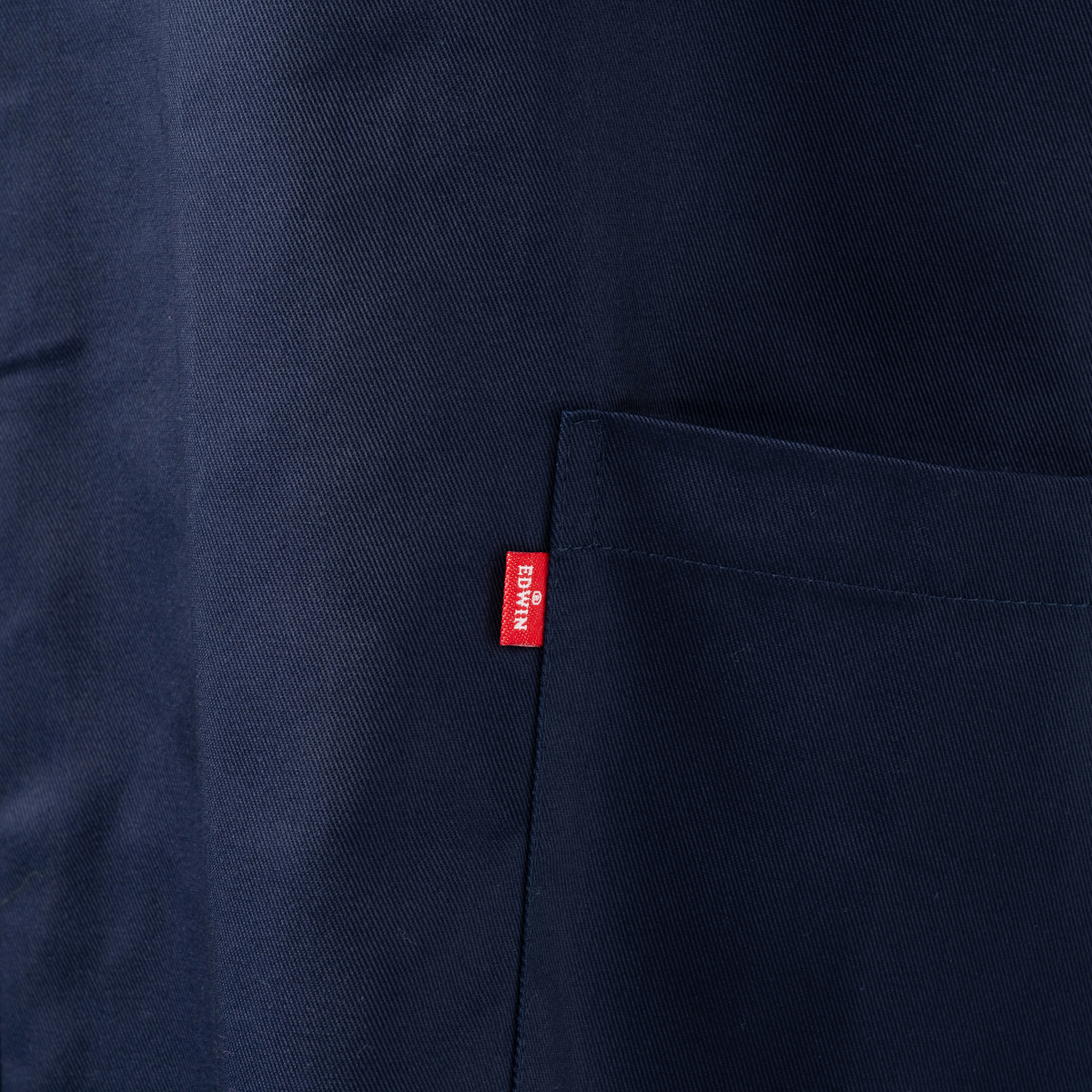 老舗ジーンズブランドEDWINのエプロン。オールシーズン使えるツイル素材で、手軽に洗濯機洗いが可能。シンプルなデザインで、身頃の左右にポケット付きです