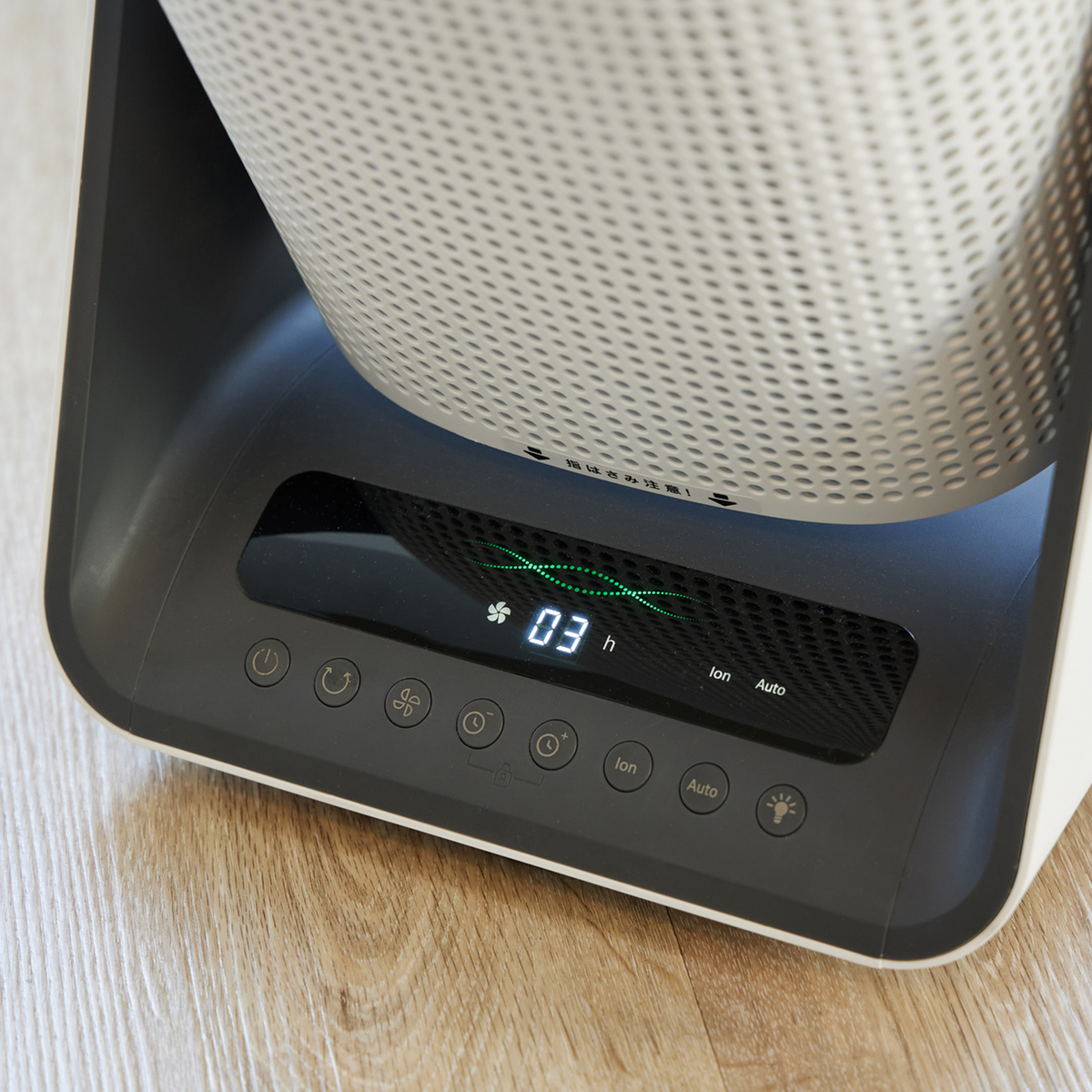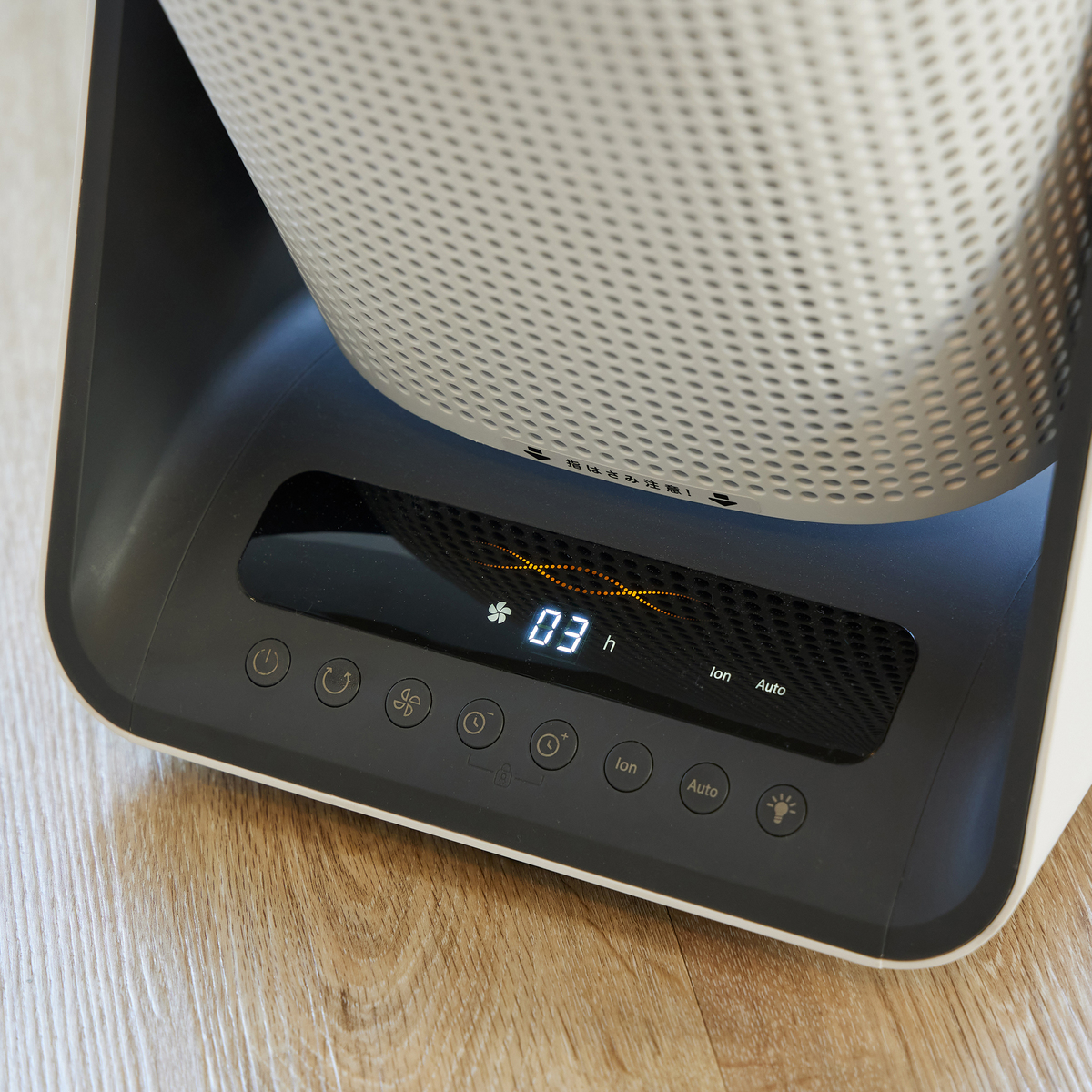 本体側面は360度空気を吸引する「吸込口」になっています。内蔵のファンで室内の空気を効率よく吸い込み、フィルターを通った風がすばやく循環。フィルターは「高性能フィルター」「活性炭」「プレフィルター」の3層構造で、ホコリやPM2.5をキャッチします