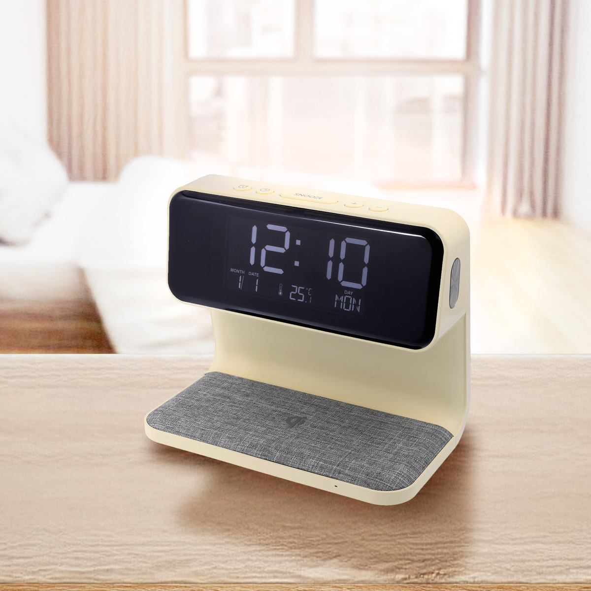 Qi対応デバイスを機体に置いて、寝ている時にワイヤレス充電ができる目覚まし時計です。ディスプレイには日にち、時刻、曜日、温度といった日常的に役立つ機能が表示されます。環境に合わせ、3段階に光の加減を調節可能。寝過ごし防止に便利なデュアルアラーム&スヌーズ機能が付いています