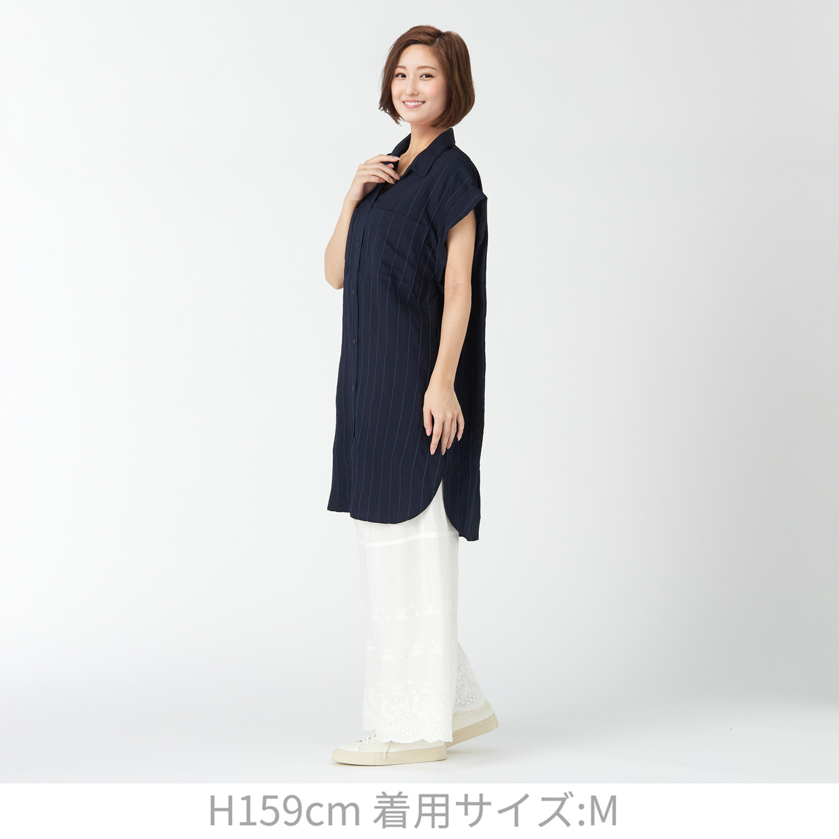 購入前に想像していた以上に生地が軽くてサラッとしていて着心地が良いです。 ネイビーにして良かったです。白のボトムに合わせると涼しげに見えます。