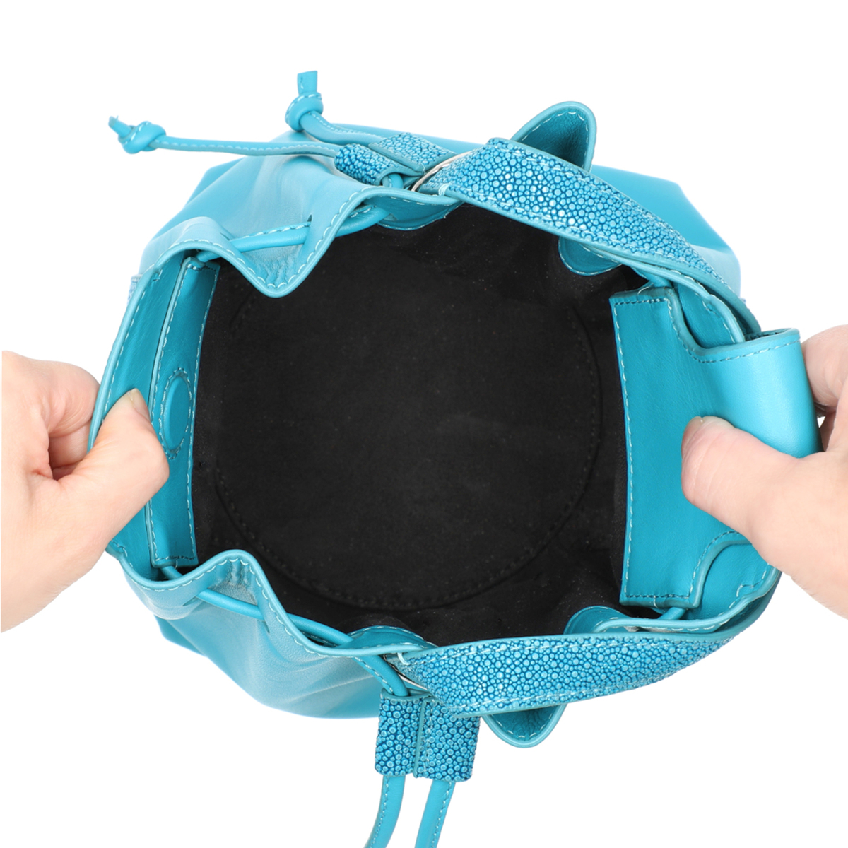 [サイズ(約)] 縦21×横16(下部)26(上部)×マチ15cm ハンドル立上り:10cm ショルダー立上り:56〜63cm [重量]約550g(付属品含む) [素材] 表地:エイ革、牛革 ※裏地有 [仕様] 付属(取り外し可):ポーチ×1 ショルダーストラップ×1 レザータグ×1 開閉:マグネットフラップ式/巾着式 底ビョウ:無 [ポケット] 内側:無 外側:無 [注意事項] ※製品の色合い風合いに多少の違いがございます ※天然皮革につき染色工程上にある程度の色ムラ、染めムラなどが生じる場合がございます ※摩擦により衣服類に色が移る可能性がございます ※水分やアルコールを含む製品(香水や除光液等)や油分を含む製品(化粧品)に直接触れないようご注意下さい。色落ちやシミの原因となります。付着した際は乾いた布あるいは、水に浸した硬く絞った布などで拭き取ってください ※金具保護のため、保護シールを貼っております。保護シールをはがした際、温度差や湿度で可朔剤が付着する場合がございます ※ご利用後は柔らかい布でぬぐうようにお手入れいただき、付属の袋に入れて保管下さい ※高温多湿になる場所を避け、乾燥した場所に保管下さい 【タイ製】