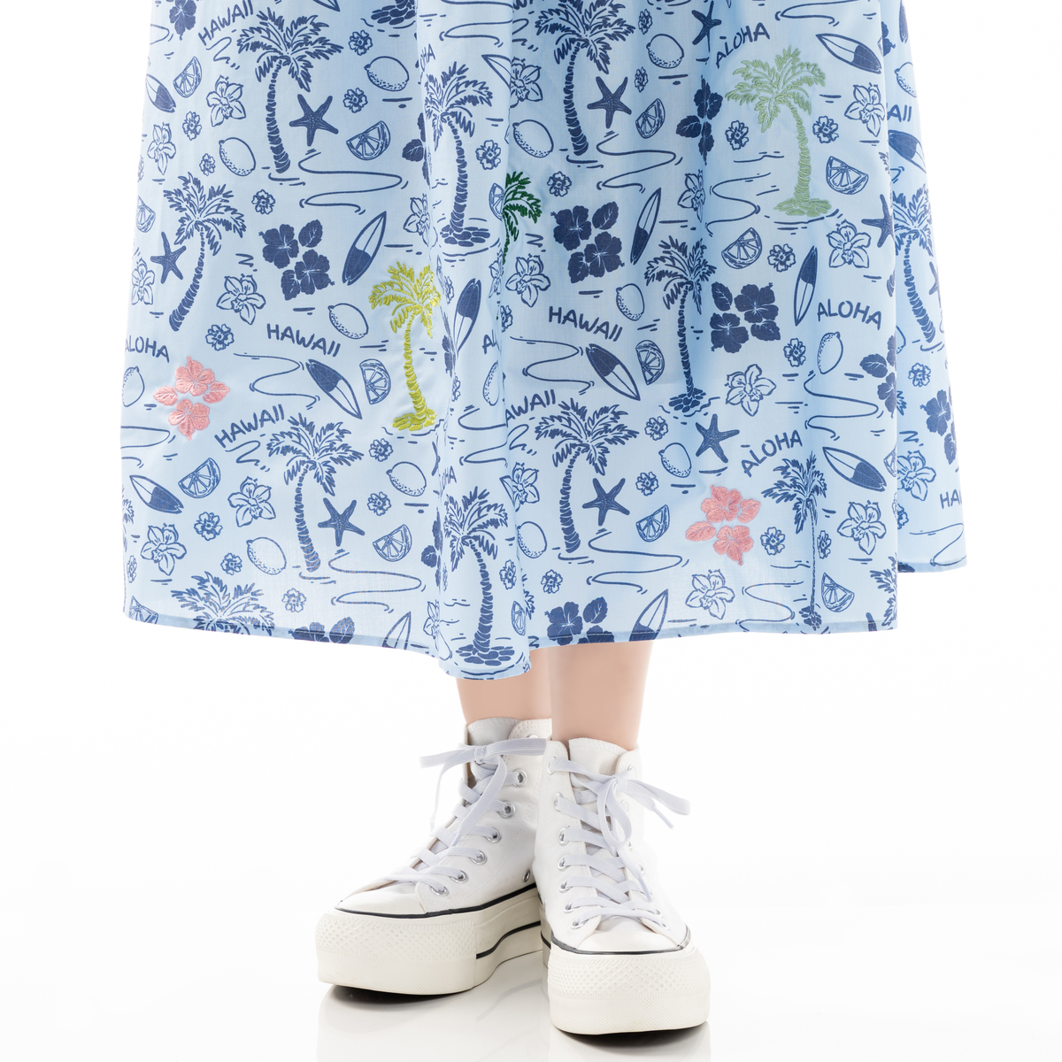 ビックリしてしまうほどリーズナブルなお値段になっていたので、普段は下半身が肥大して見えることを恐れて買わないフレアスカートに挑戦してみました。aloha柄、可愛いです!フレアなのにスッキリしていて、肥大して見えなかった!ウエストのゴムも苦しくなくていい感じです。大成功のお買い物でした。ありがとうございます☆