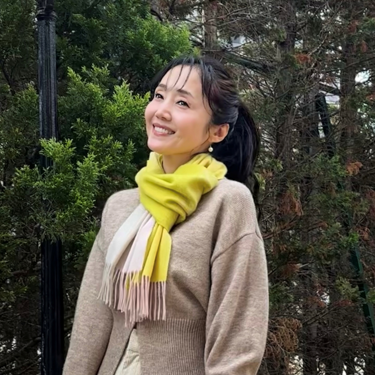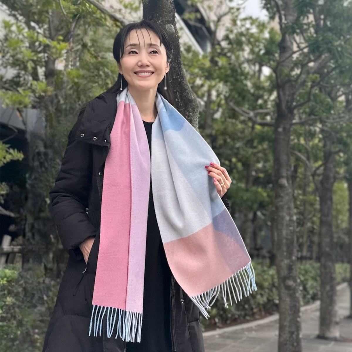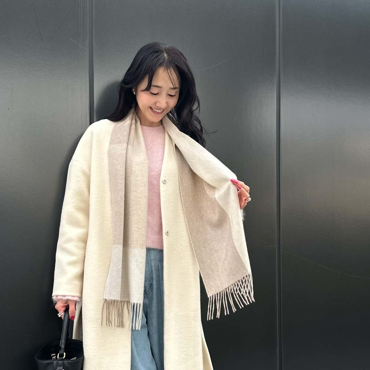 老舗メーカー川辺株式会社製造の貴重なカシミヤ素材を使用した洗えるリバーシブルマフラーです。 幅約30cmのマフラーは丁度良いサイズ感で、バッグの中にもすっぽり入り、昼と夜で寒暖差がある時期など、幅広い季節でお使いいただけます。