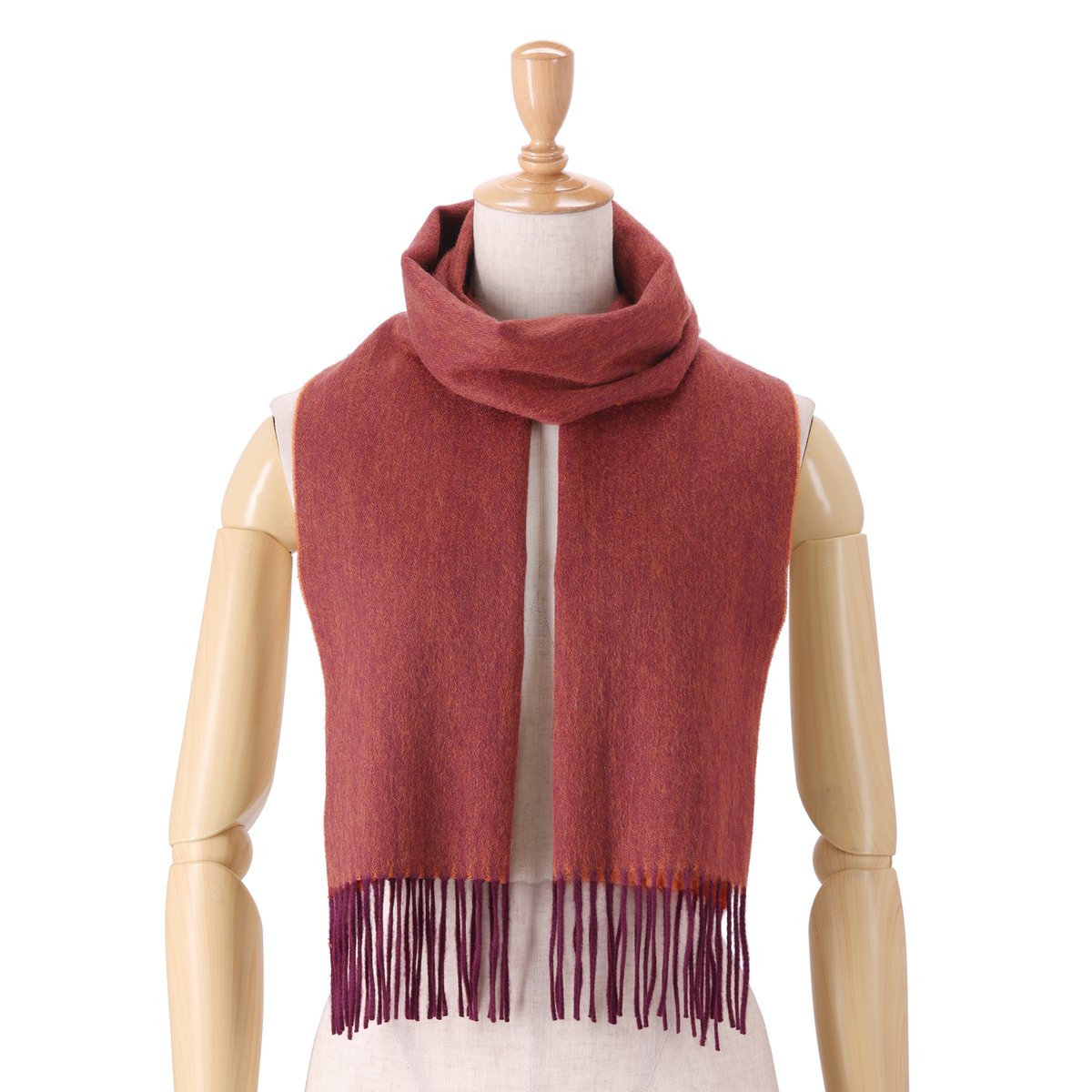 レンガ・ボルドーを購入しました。 無地・リバーシブルで 使いやすいです。 色は両面共 少し暗めの色で私は気に入りました。 生地感も丁度良い 厚さなので 巻きやすいと思いました。 (厚いと首が疲れ・薄いと形が整わず) カシミヤなので肌触りも良いです。 鼻のムズムズ感も無く 良いマフラーです。 寒くなっで来たので いつも 使っています。 以前 購入した マフラーと交互に使っています。(マフラーも お休みさせながら使うと 長く使えるので・・) 今回のマフラーも100点・満点でした!