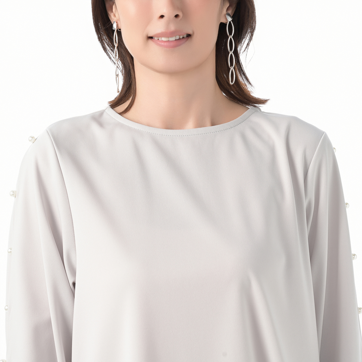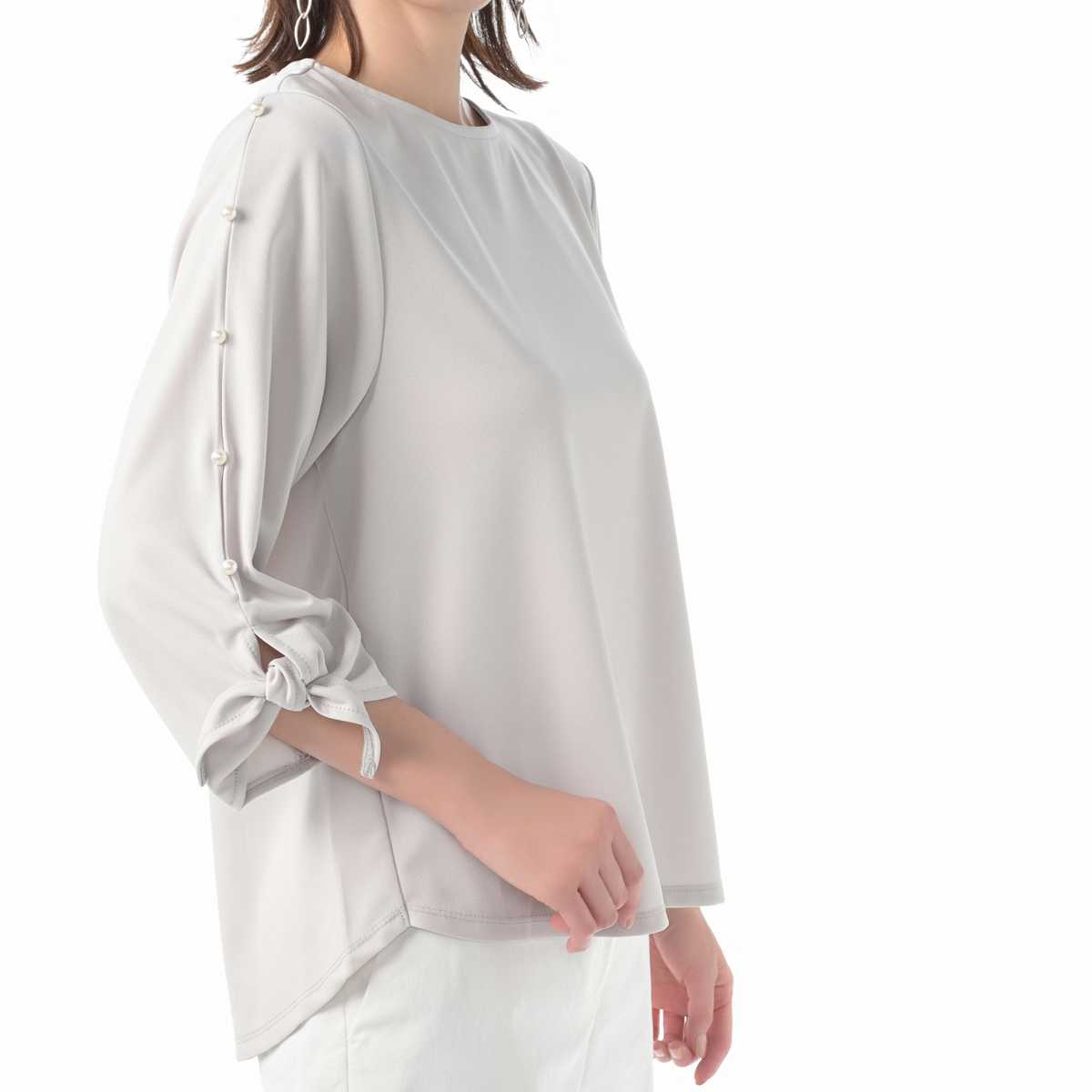No. 733394 CARRIERE袖パール調ビジュー付エレガントカットソーブラウス