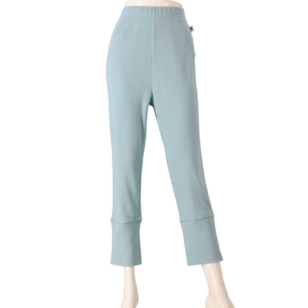 人気のワッフル素材で仕立てたパンツ。お風呂上がりやリラックスタイムにうれしい一枚です