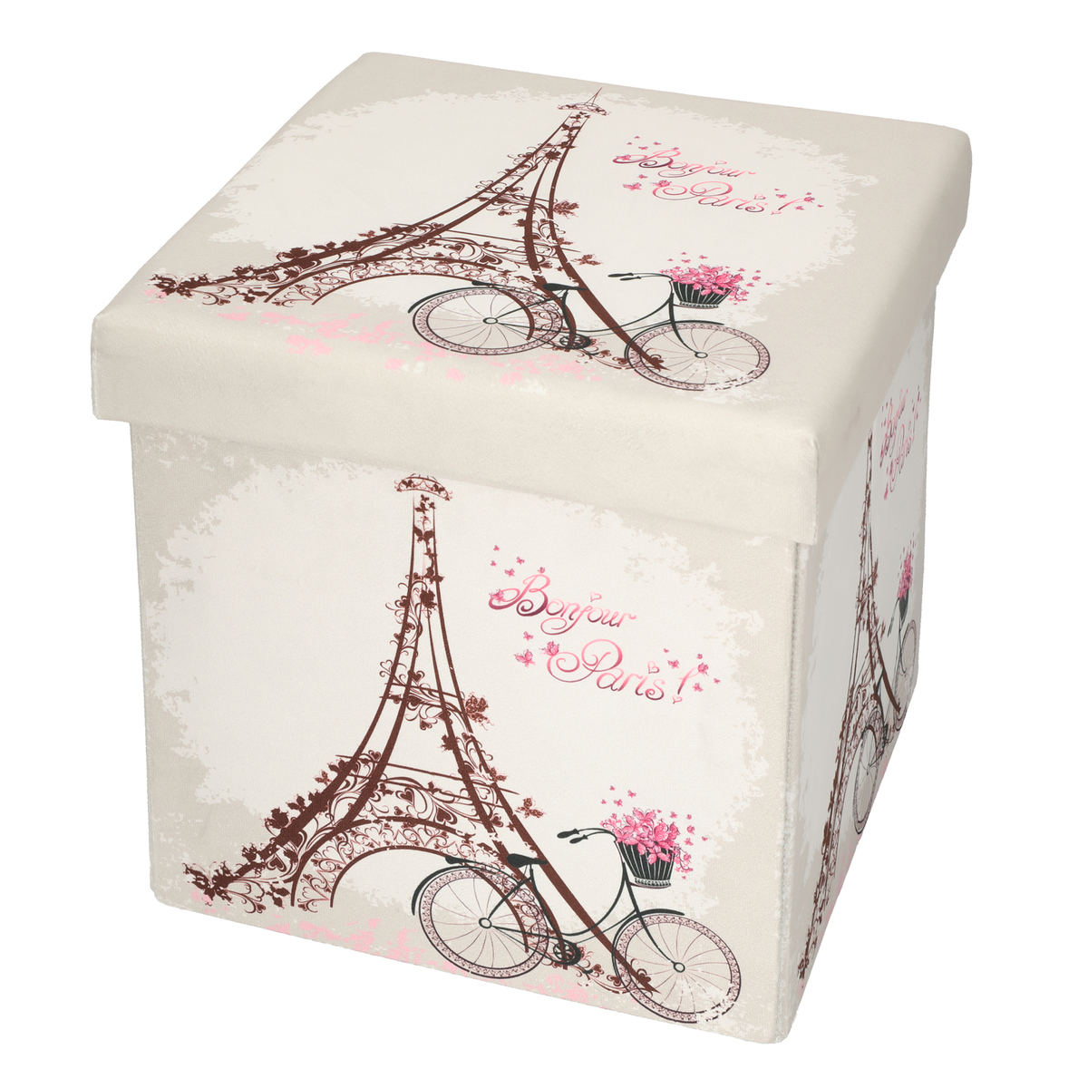 おもちゃ、衣類、お掃除道具等、たっぷり収納できるスツールです。座り心地もよく、折りたためばコンパクトになりしまう場所にも困りません。