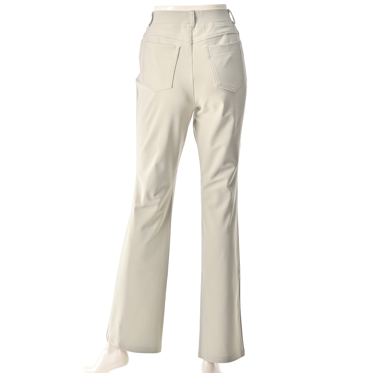 コーデに活躍してくれるスタイリッシュなブーツカットパンツ。タテ・ヨコ・斜めにストレッチ性があり、スリムながらも締め付け感を感じにくい穿き心地です