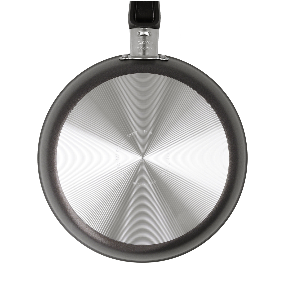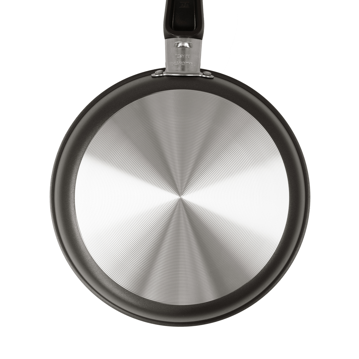 2つのフライパンを重ねて蓋のように使用できるので、食材の両面を簡単に焼くことができるフライパン*。片方のフライパンがわずかに大きく、ヘリの一部がへこんだ構造になっています