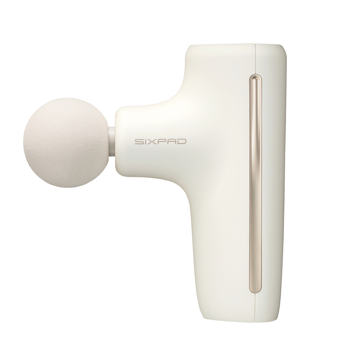 最大3000回/分の振動機能を搭載したSIX PAD パワーガン アクティブ。ストレッチをしながら当てることで、筋肉や筋膜にアプローチします