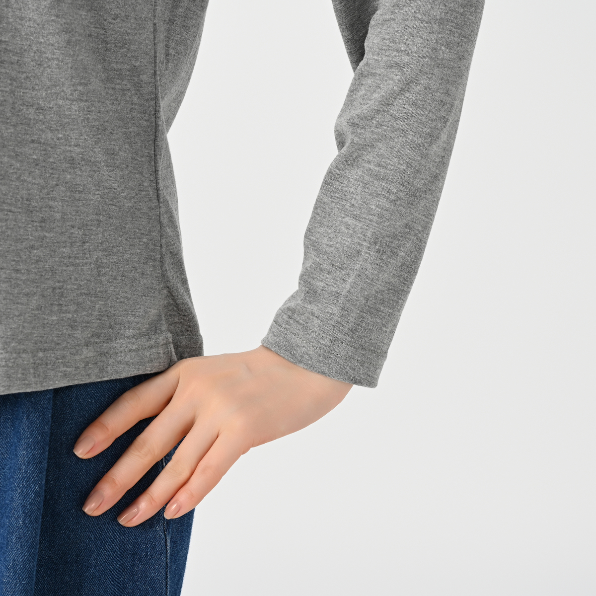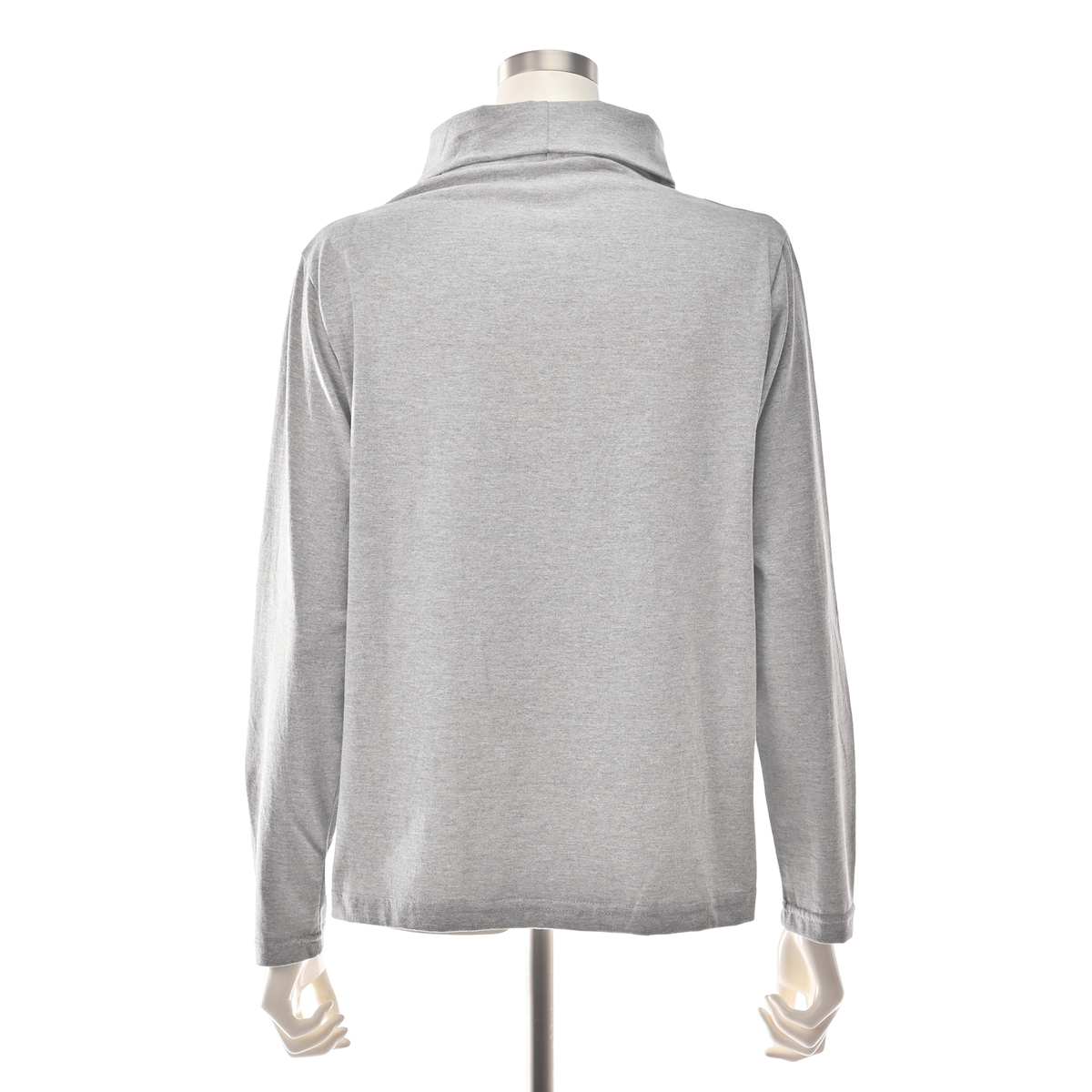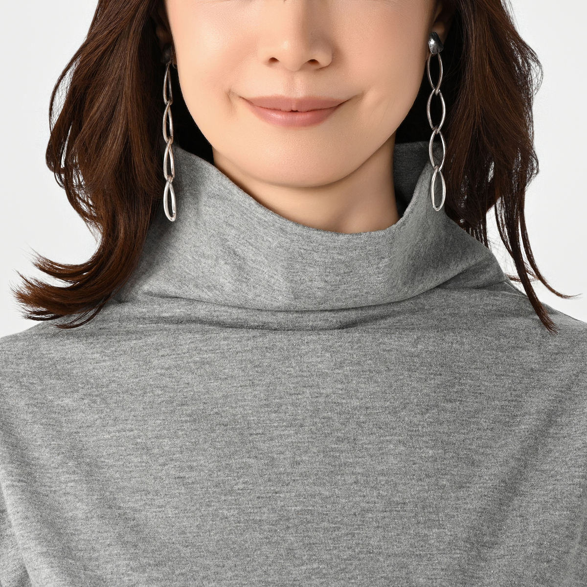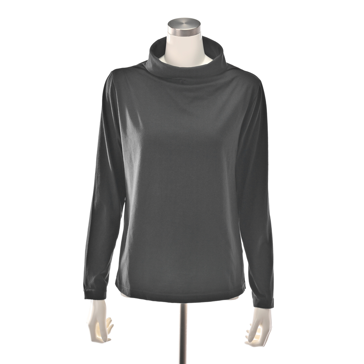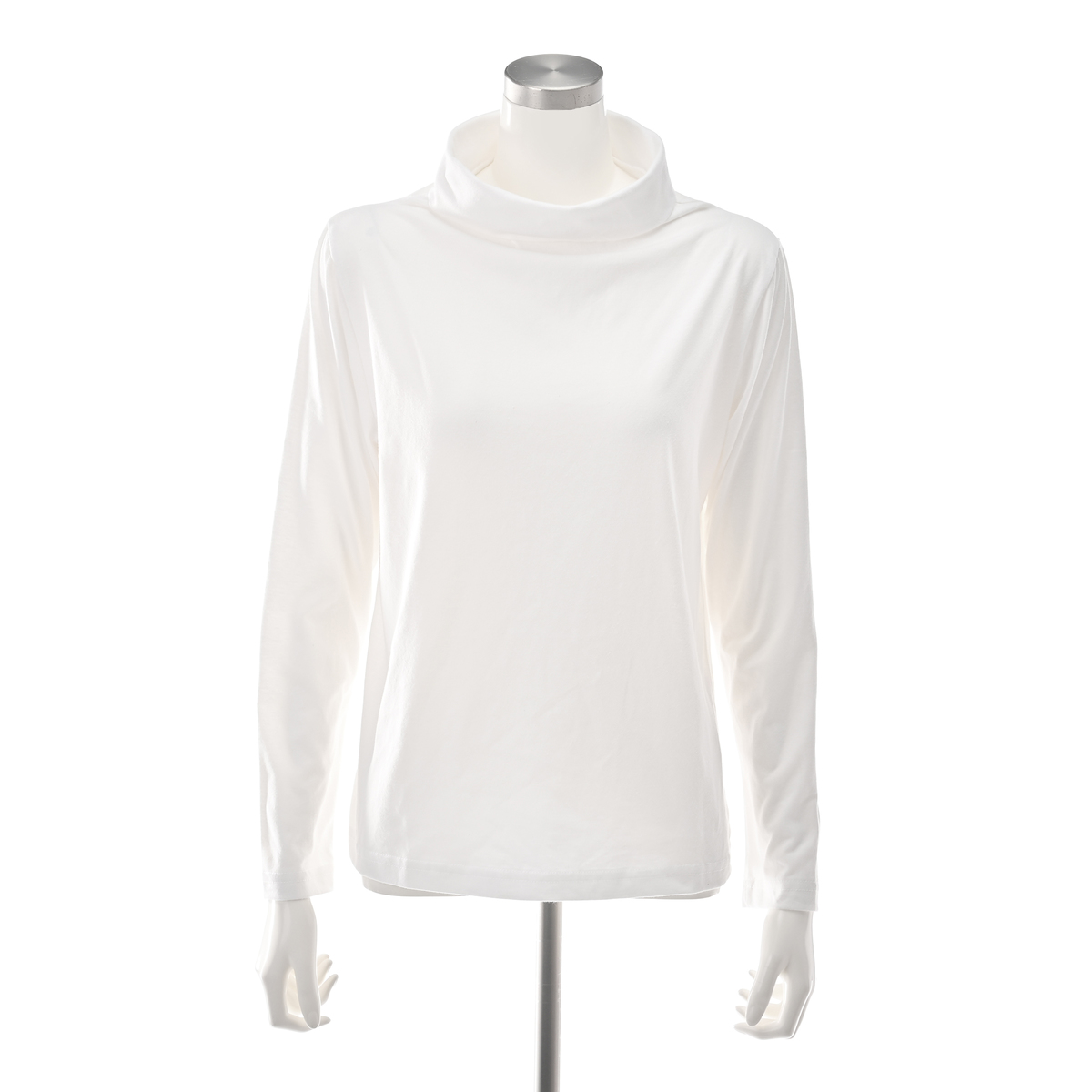 タートルが苦手で、かといって秋以降レイヤーで着るとなると襟は欲しい。だからオフタートルを探しています。これは襟は申し分ないのですが、ボディや腕周りにあまり余裕がありません。もう少し伸びる素材ならばありがたいです。伸びない綿素材のものは余裕があったのに、ちょっと残念。