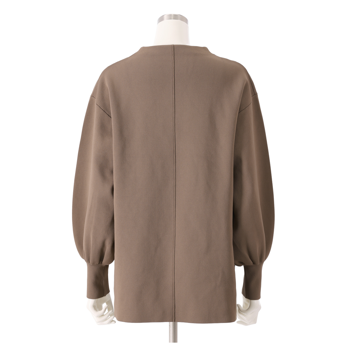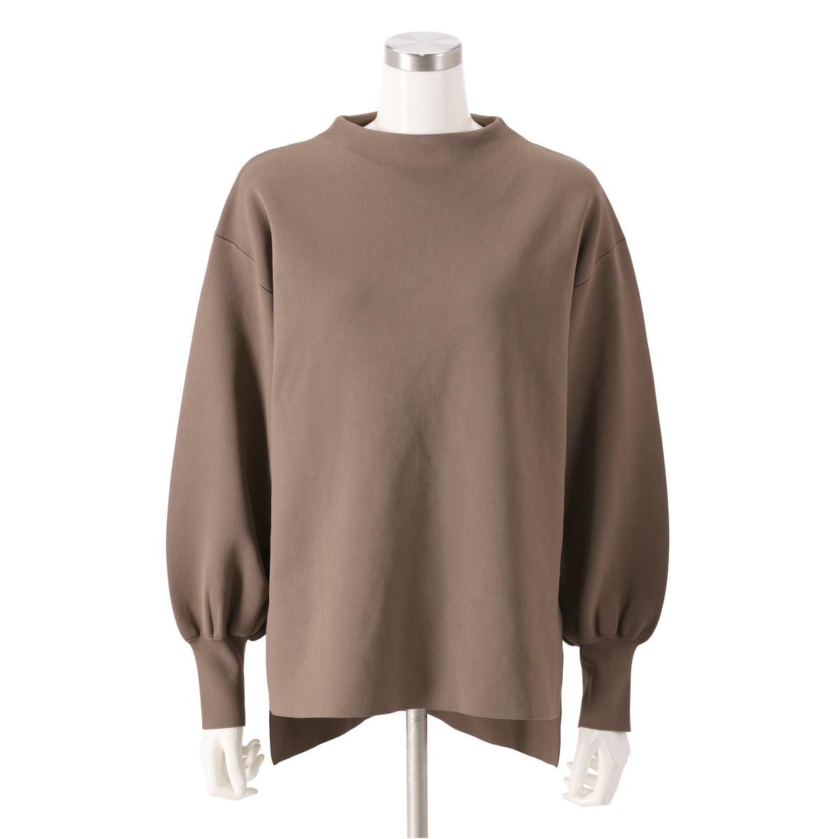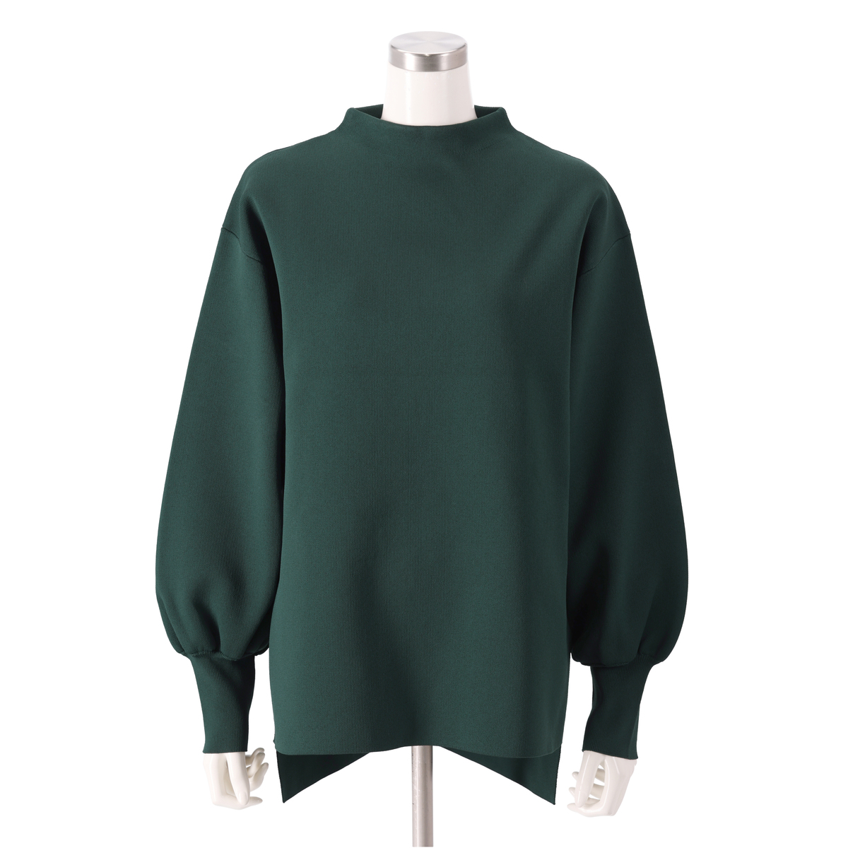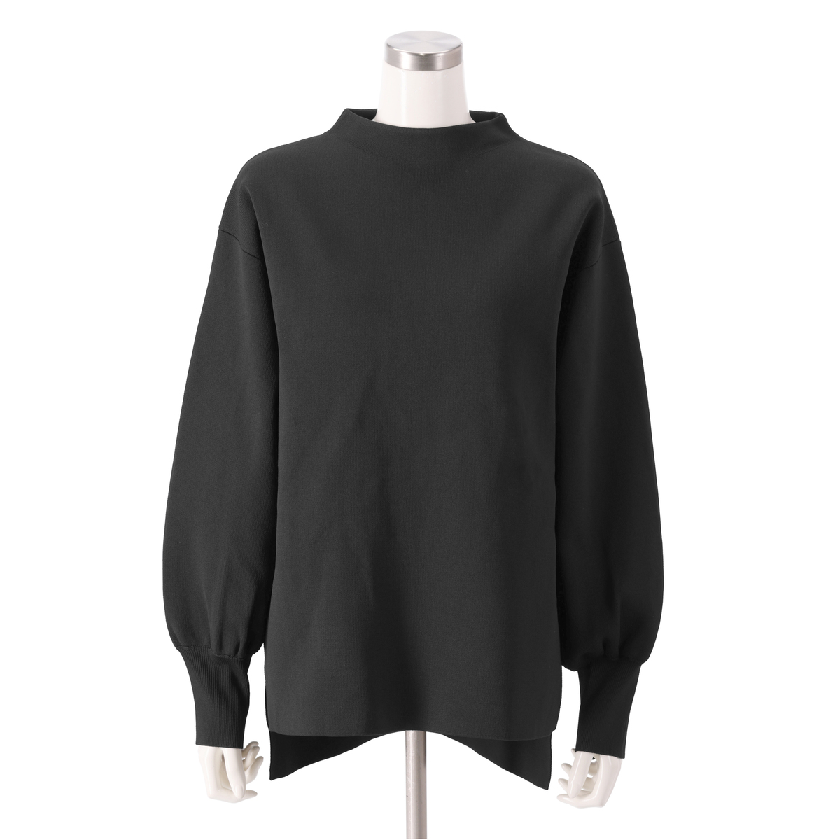 程よい高さのボトルネックとふんわりギャザー袖が特徴のニットプルオーバーです。後ろ身頃のシームレスタックが縦長効果を生み、すっきりとした印象に。裾スリット入りで一枚着でもインナーとしても使いやすいデザインです