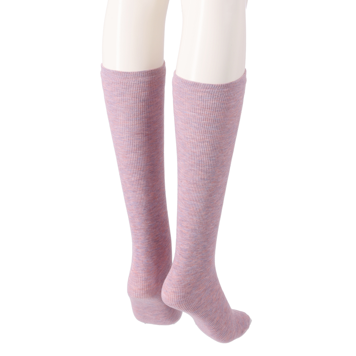 素材はリブ調の組織でフィット性が良く、たるみやズレを感じにくい着用感。肌側は同系色の毛布素材で、履き口を折り返して毛布部分を見せると、ボア見せソックスにもなります。かかとは熱セットで成形し、縫い目や切り替えがなく、窮屈感のない履き心地です