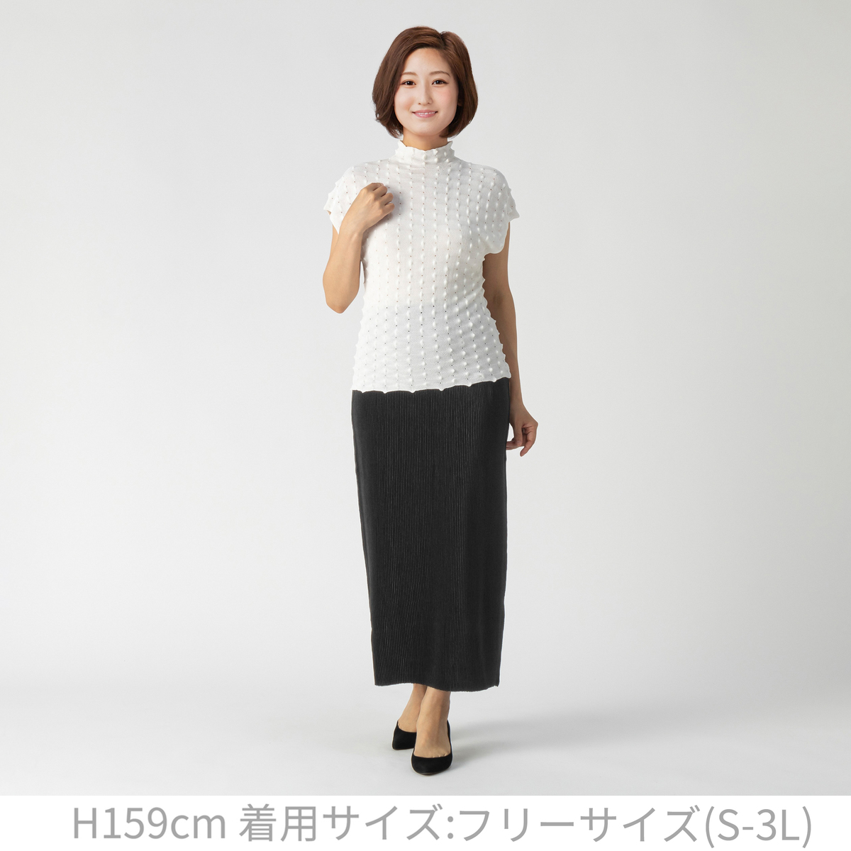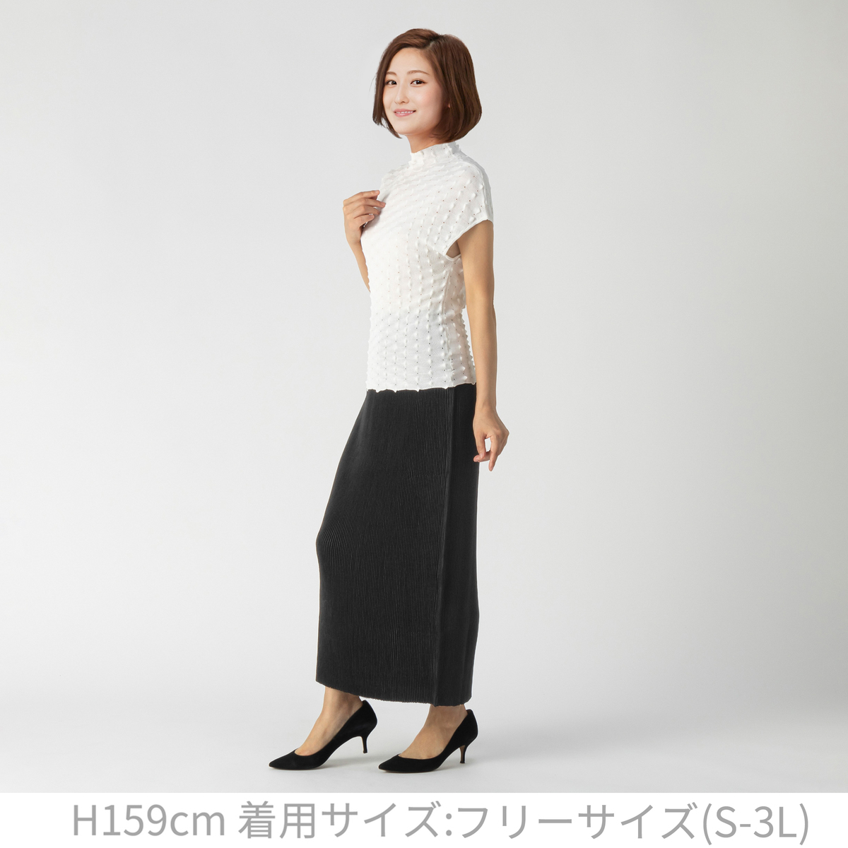 タイトシルエットにモードな雰囲気を加えたロングスカート。生地を幾重にも折りたたむシャトルプリーツは、タテ・ヨコ・斜めへの伸縮性が特徴で、様々な体型にフィットする素材。スペッチオ独自のプリーツ加工製品で、サイズ変化に合わせた着心地を実感できます。ワンサイズフリーでサイズ選びのストレスから解放され、様々な体型の方に程よくフィットします