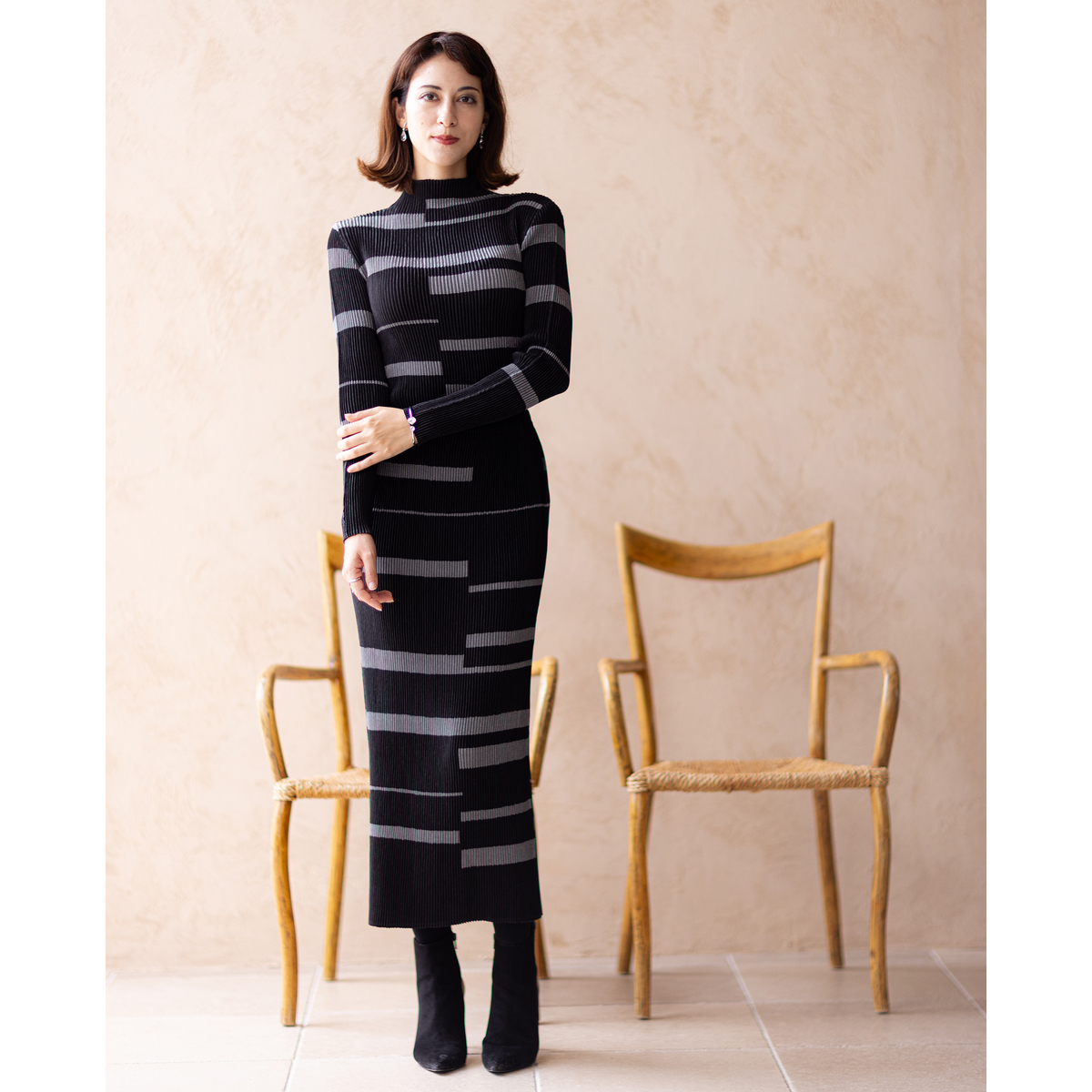 千鳥柄とブラックの二色を購入しました。 伸び伸びで楽なのに、不思議と身体にそってくれて、すごく綺麗なラインが出ます!でもピタピタになりすぎないのが素晴らしい。 特に千鳥柄は可愛いくてショートブーツにも合いそうだし、これから秋冬は大活躍しそうです。買って良かった!
