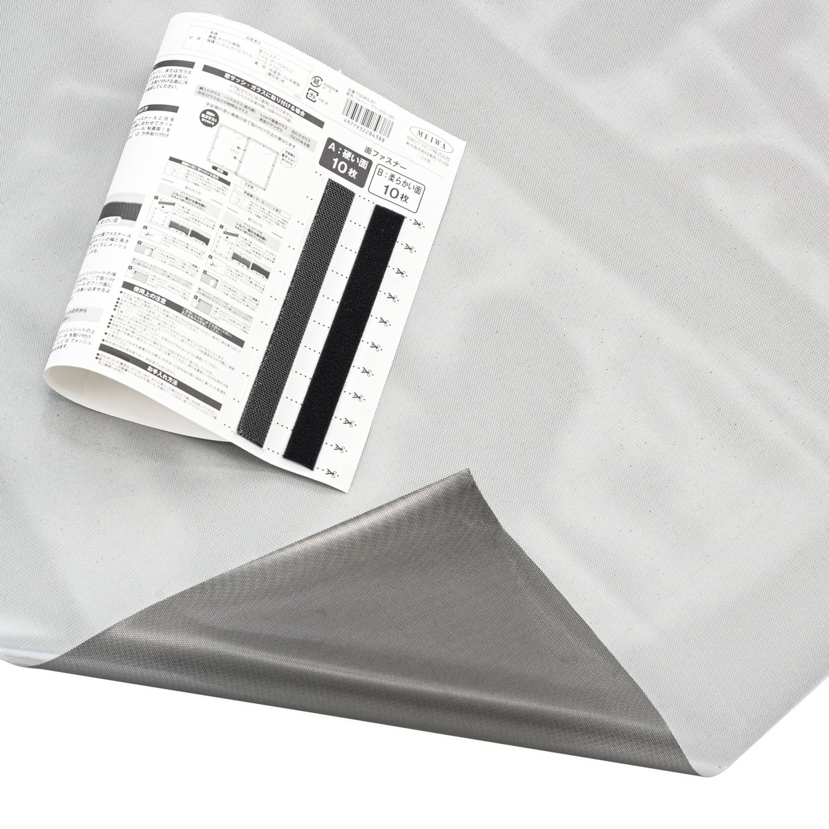 [商品内容] ・本体 ・面ファスナー×2(A、B) [サイズ] 本体:94×200cm 面ファスナー:2×18cm [材質] <本体> 表面:アクリル樹脂 保護フィルム:ポリエステル <面ファスナー> パイル:ポリプロピレン ベース:ナイロン 裏面:(粘着面)ゴム系樹脂(離型紙)紙 [使用方法] ・網戸に取り付ける場合(網戸サッシに取り付ける。網には直接接着しないでください) ・取り付けるサッシの汚れをキレイに拭き取り面ファスナーを取り付ける面に汚れがないか確認してください 1、付属の面ファスナーA(硬い面)とB(柔らかい面)をラベルの点線にあわせてカットし、面ファスナーAを10ヵ所貼り付ける 2、1で取り付けた面ファスナーAを含んだ網戸サッシの幅と高さを測り、そのサイズにメッシュシートをカットする 3、カットしたメッシュシートの保護フィルムを剥がし、1で取り付けた面ファスナーAのフック面にメッシュシートを食い込ませるように押し込む 4、押し込んだメッシュシートの上から面ファスナーBを取り付け、面ファスナーAとBでメッシュシートを挟みこみます ■取り扱い説明を充分にご確認の上、ご使用下さい 【日本製】 [注意事項] ※下記ガラスにはご使用いただけません(ペアガラスのみ室外側には取り付け可能) ・網入りガラス・ペアガラス(室内側)・LowーE複層ガラス・合わせガラス・防犯ガラスなどの特殊なガラス・表面がザラザラ・凹凸のある面 ※木製フレームには取り付けしないでください(面ファスナーの粘着面を剥がす際に塗装がはがれる可能性があります) ※メッシュシートのシルバー面が太陽光側になるよう取り付けてください ※安全な足場が確保できない高所への取り付けはおやめください。絶対に身を乗り出しての作業、または屋根の上での作業は行わないでください ※本来の用途以外には使用しないでください ※硬いものでこすると破れる恐れがあります ※面ファスナーの粘着面は一度付けてはがすと付け直すことができなくなります ※定期的に貼り付けた面ファスナーを押さえて外れないように確認してください ※火のそばで使用しないでください ※強風や大雨の際にはがれたり破れることがありますので、取り外してください ※お子様が本製品で遊ばないよう十分に注意してください。思わぬ事故につながる恐れがあります ※本製品及び包材を廃棄される際は、お住まいの自治体の取り決めに基づいた処理を行ってください ※物性値は当社測定値であり、保証値ではありません ※汚れがついた場合は、水で洗い流す、または濡らした雑巾などで軽く拭き取ってください ※面ファスナーの粘着のりをはがす際には、市販のテープはがし剤、プラスチックのヘラ等をご使用ください ※ご用意していただくもの:カッターまたはハサミ、定規またはメジャー