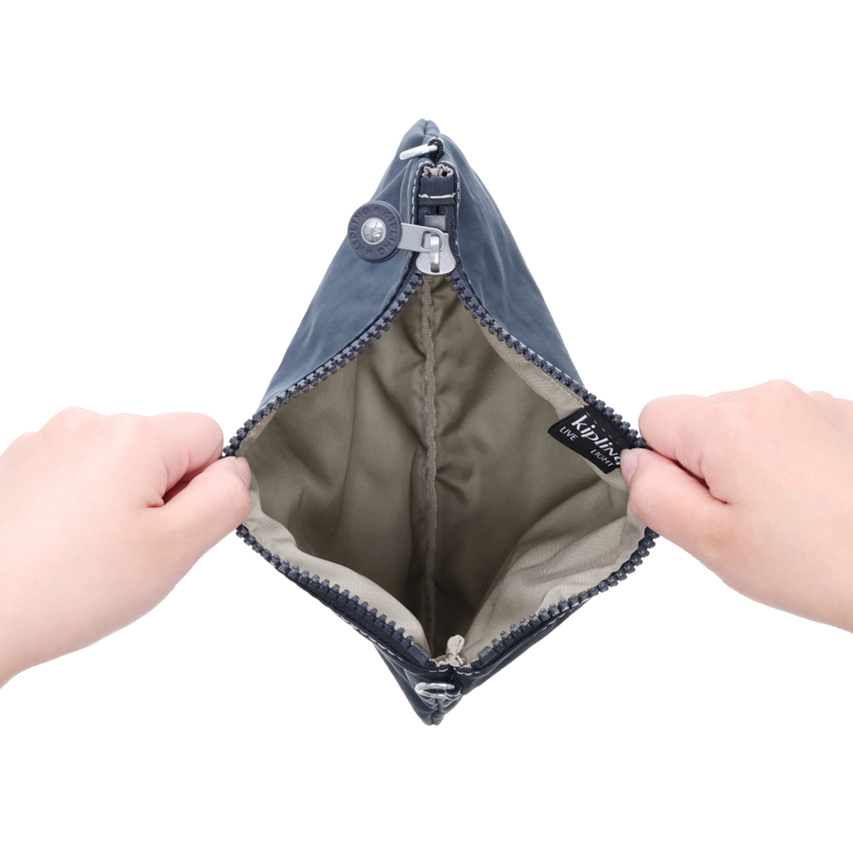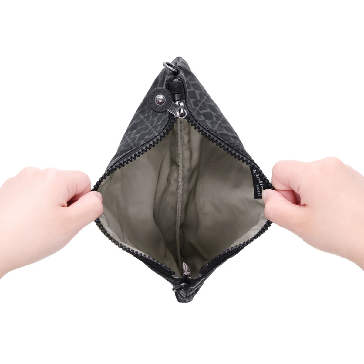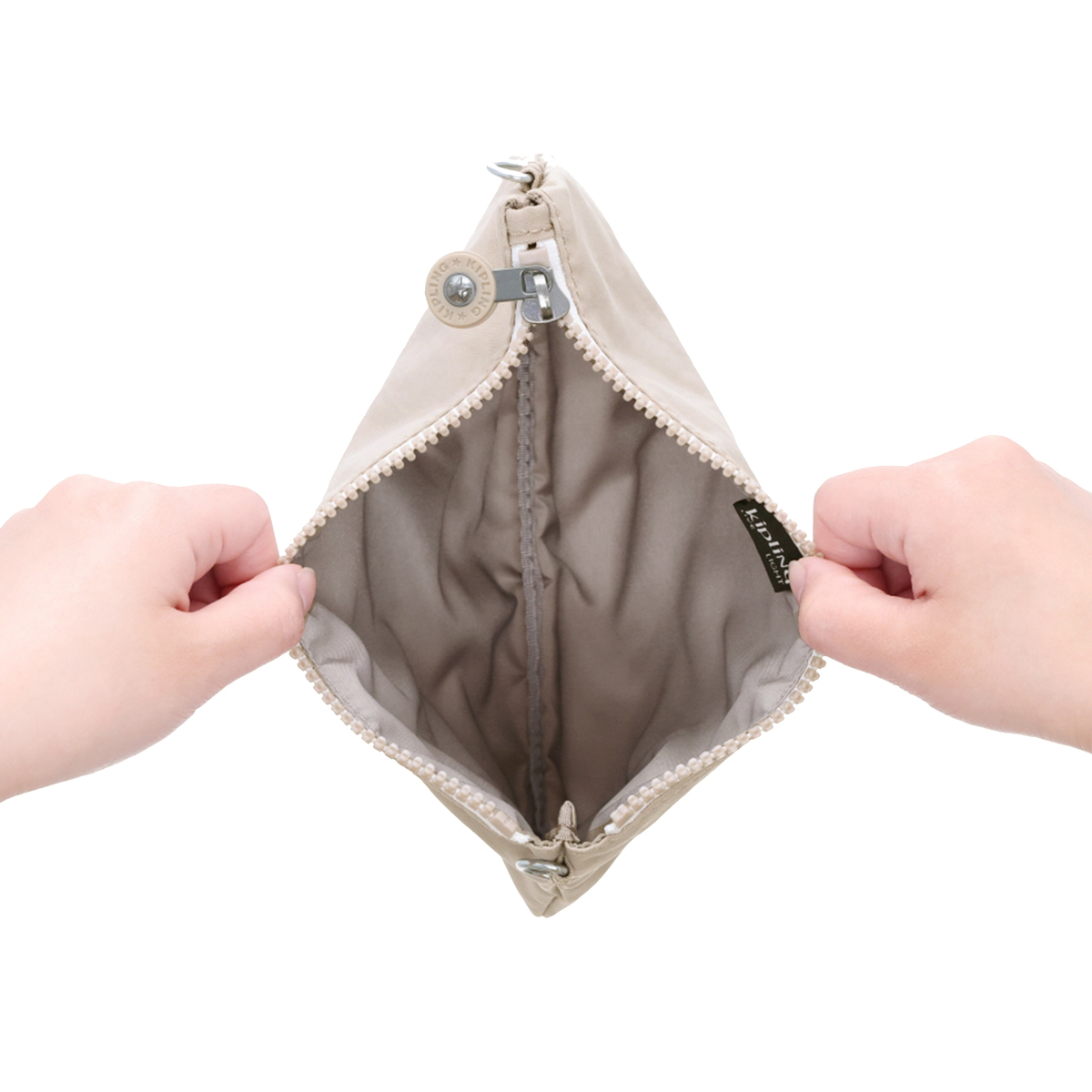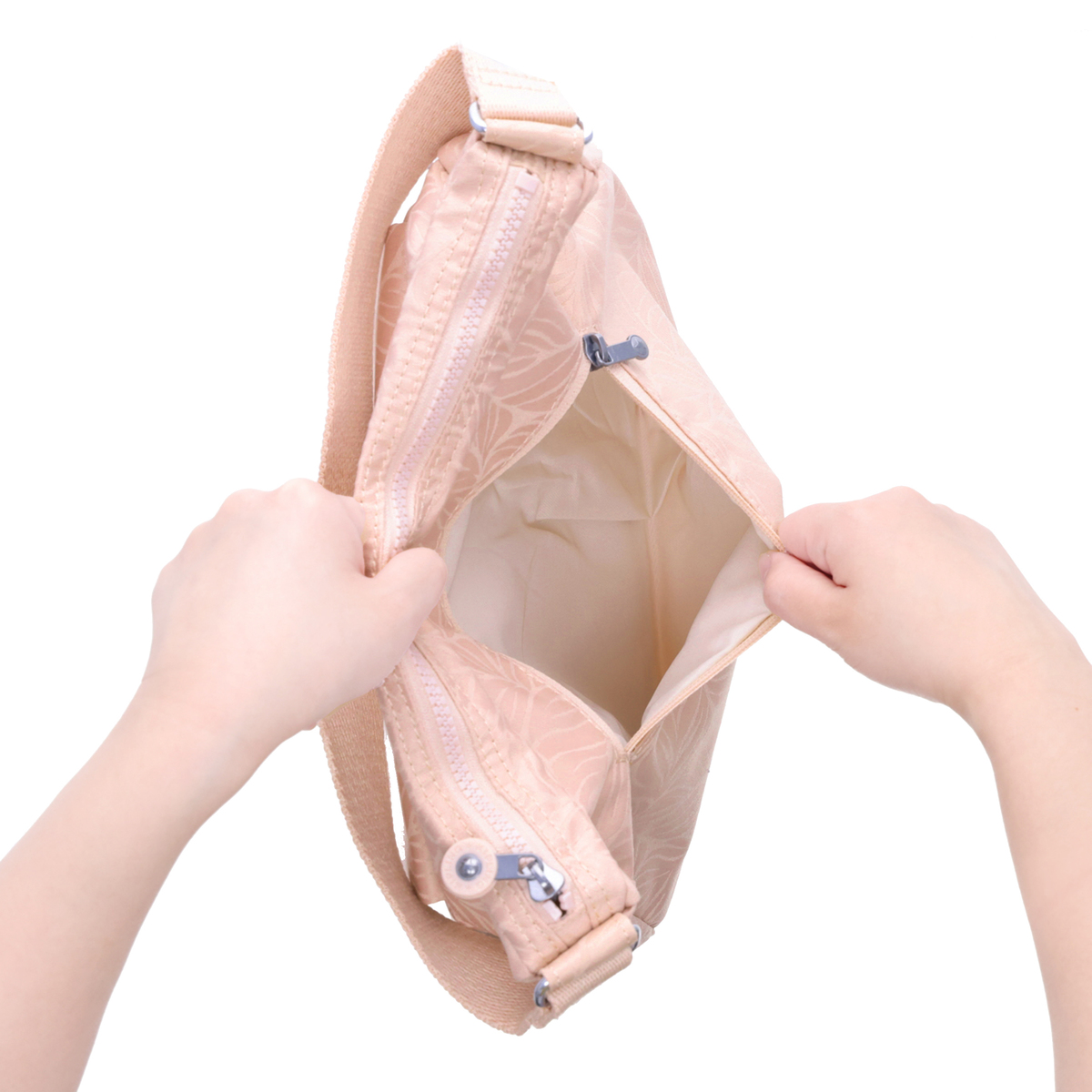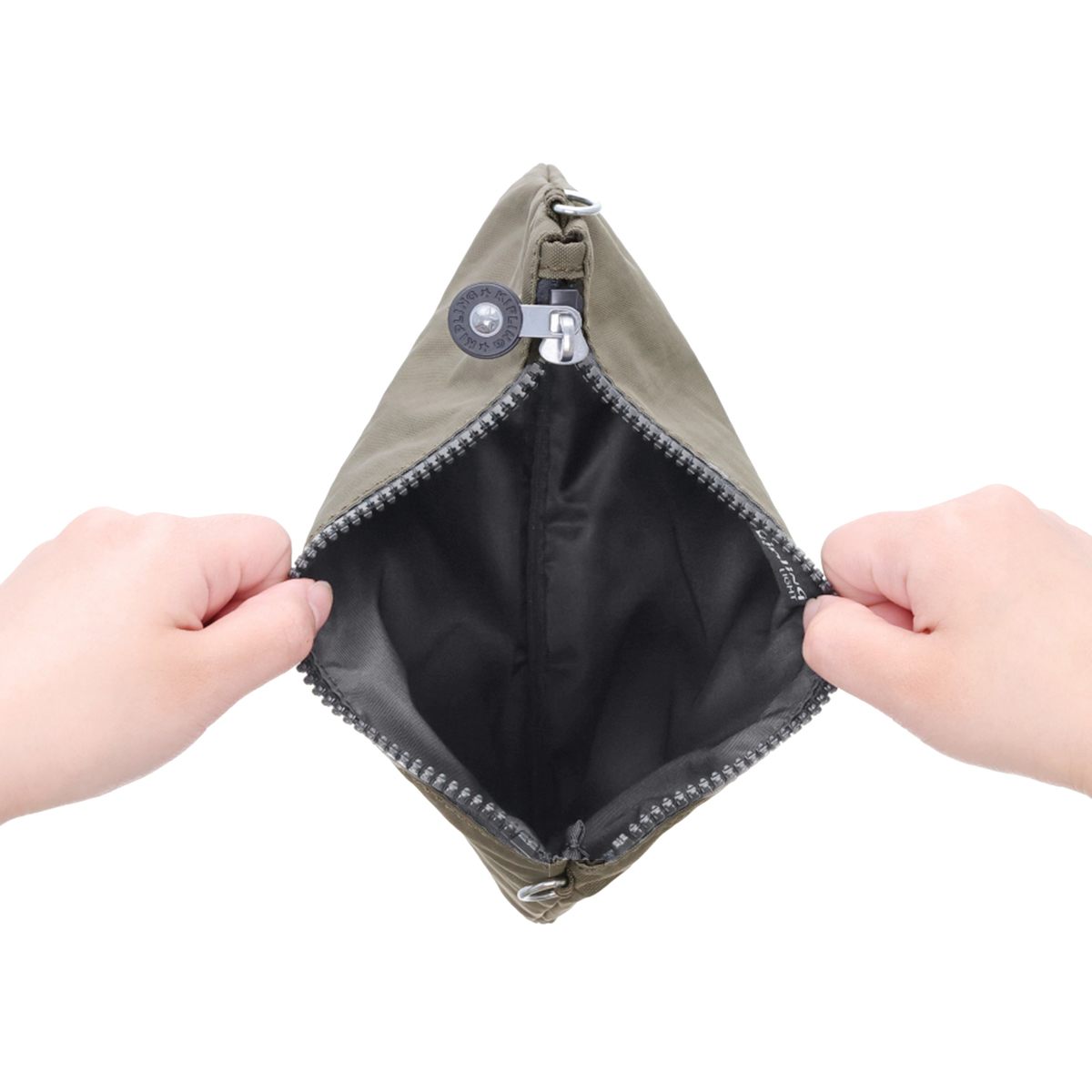 セット内のバッグのマグネット付きフラップポケットにぴったり収まるサイズ。化粧ポーチや小物入れとしてはもちろん、バッグの中に入れて仕切りの様に使っても。付属のショルダーベルトを付ければサコッシュとしても使えるので、お財布やスマートフォンなどを入れる貴重品バッグとしても活躍します