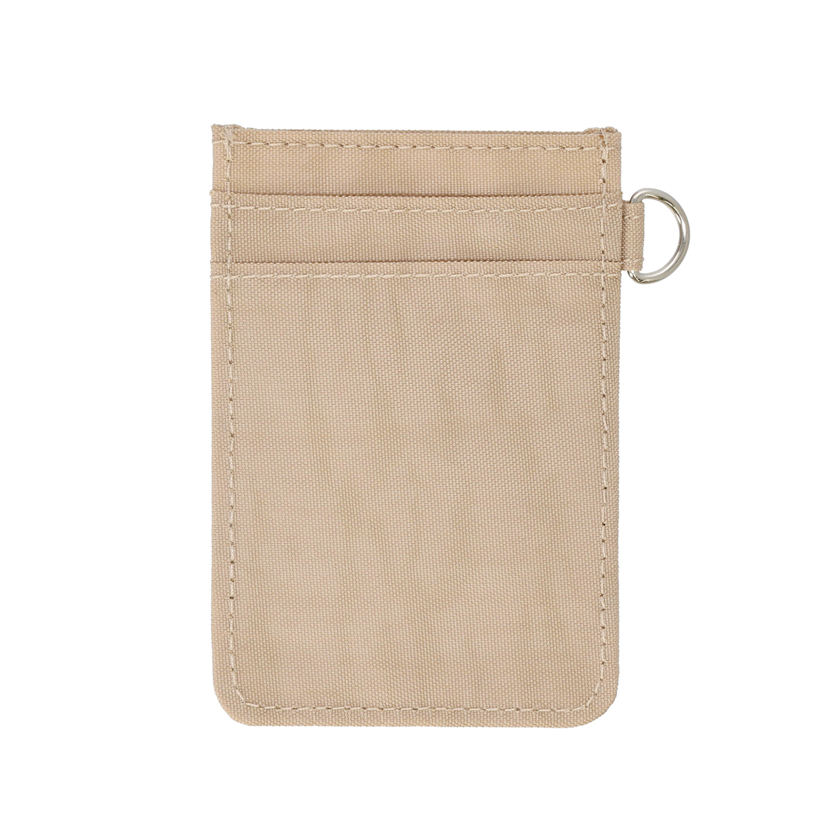 交通ICやカードキーなど、よく使うカードの収納に。Dカン付きで、バッグのキーフックに付けて一緒に持ち歩けます。カードケースは全色ベージュカラーが付属します