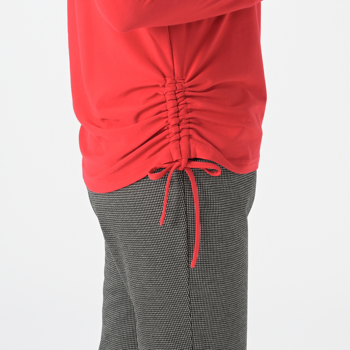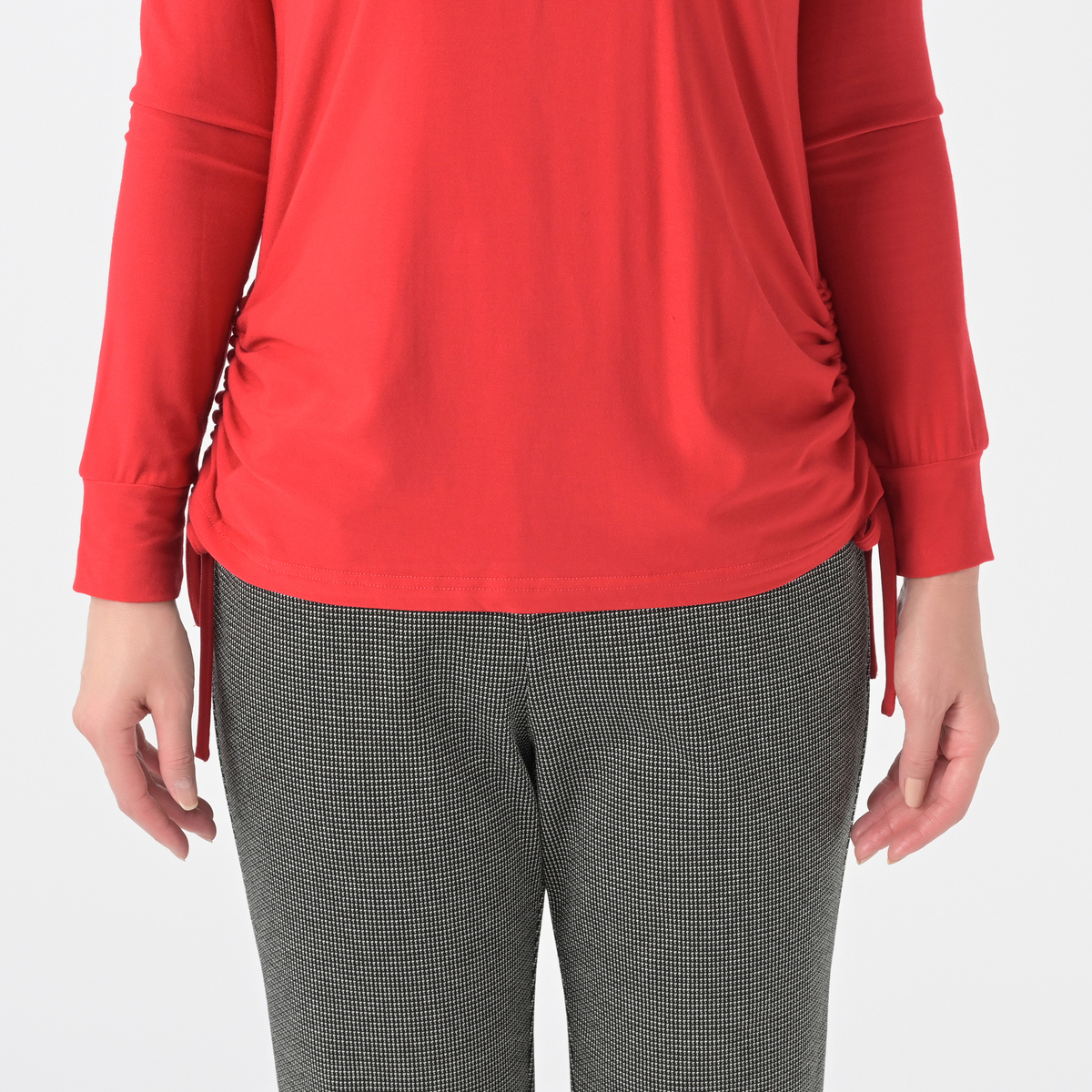 シャーリング衿と裾のドロストデザインが、エレガントでフェミニンな印象に。ギャザーの絞り分量や紐の結び方のアレンジもお楽しみいただけます