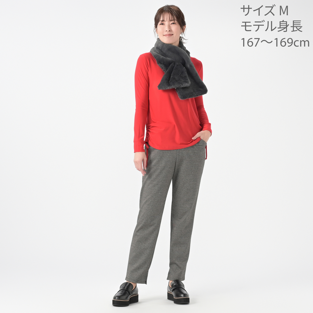 [商品寸法(ヌード寸法)cm] サイズ バスト 着丈 肩幅 袖丈 S:91(73〜81) 60 34 56 M:96(79〜87) 61.5 35 56 L:102(85〜93) 63 36 56 LL:108(91〜99) 64.5 37 56 3L:114(97〜105) 66 38 56 [素材] アクリル55% レーヨン40% ポリウレタン5% [お手入れ] 洗濯機洗い可 [注意事項] ※商品寸法の誤差は多少発生します。ご了承下さい ※淡色製品には蛍光増白剤入り洗剤を使用しないで下さい ※洗濯後は重ね置きしないで下さい ※洗濯後はすぐに脱水し、形を整えて干して下さい。長時間、水につけたままにしないで下さい ※素材の特性上、着用や洗濯・クリーニング時の摩擦により毛羽立ち、毛玉が発生します。その際はお早めに毛玉取り器等で手入れをして下さい ※直射日光や蛍光灯の影響で変色することがありますのでご了承下さい ※濃色製品は着用中の摩擦により色移りすることがあります。また、雨や汗等で濡れた状態で着用すると色移りすることがあります。その際はお早めに洗濯をして下さい ※洗濯やクリーニングにより徐々に色あせします。また、色落ちすることがありますので、他の物と分けて洗って下さい ※洗濯の際は裏返しにし、洗濯ネットを使用して下さい ※洗濯・クリーニングにより多少、収縮することがあります 【中国製】