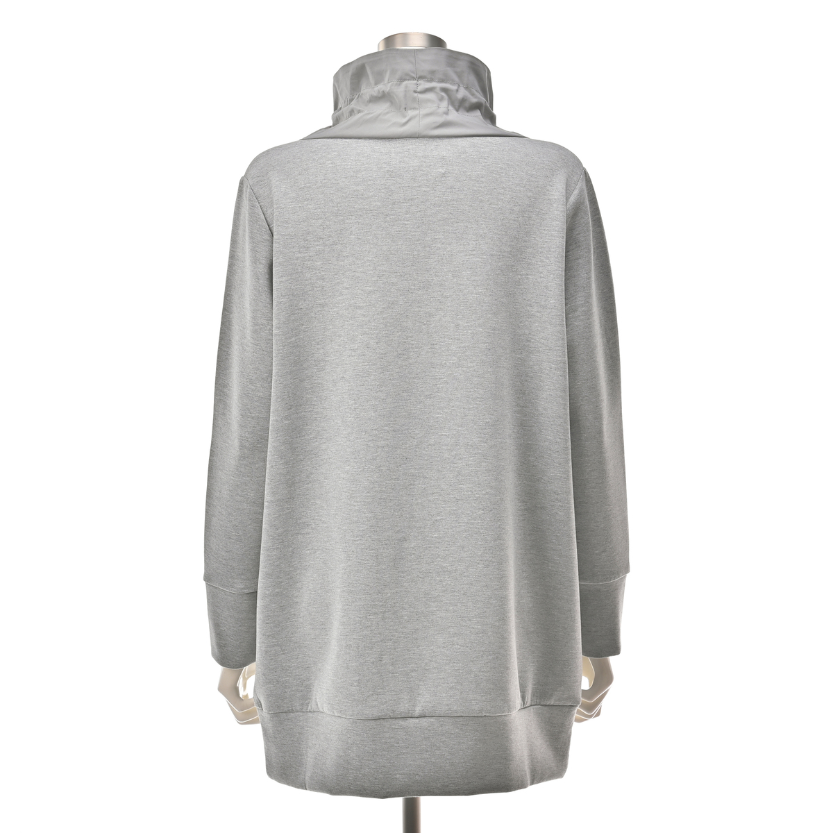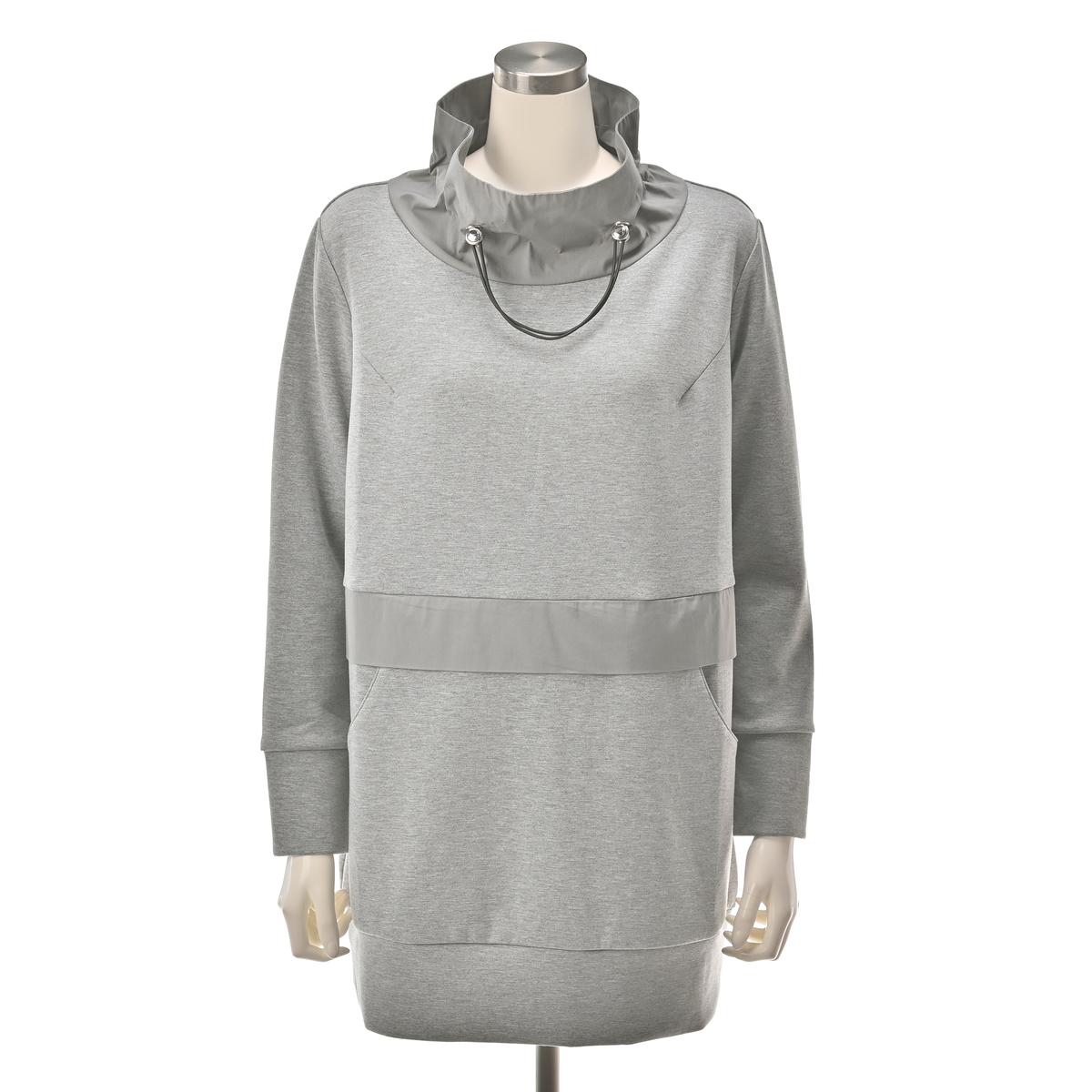 アレンジが効くドロストデザインに惹かれ、エクリュLLオーダー。期待通りのドロスト効果から、その日の気分で衿の雰囲気を変えて楽しめる!!異素材の組合せとドロストデザインは、さすが吉田先生と感激!!ポンチ素材のチュニック丈だから、暖かい秋の気温日にはこれ1枚で、真冬には色々な色彩やプリント柄のタートルをアンダー重ね着で、楽しむことが出来る!!吉田先生、オシャレなデザインのチュニックをありがとうございました。