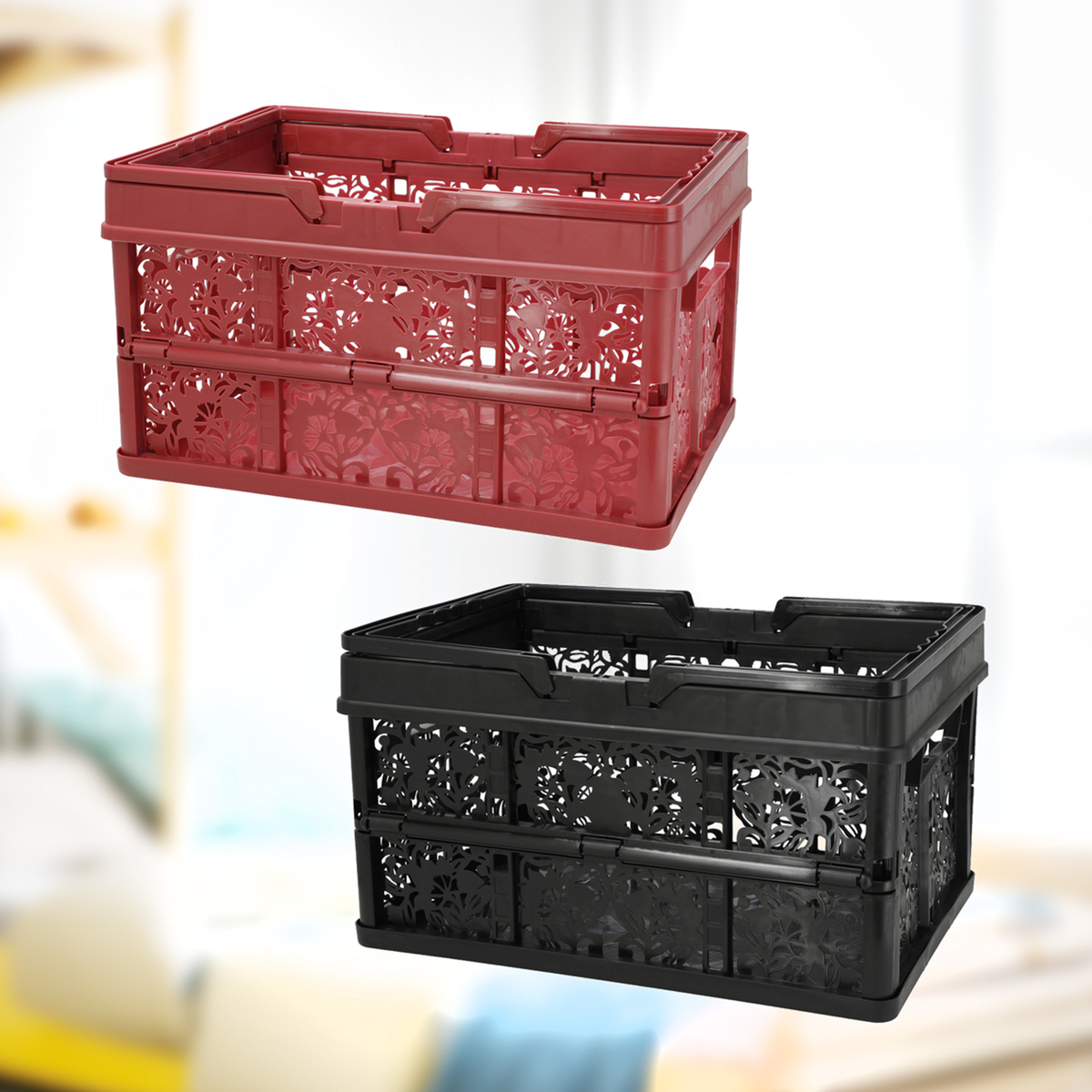 簡単に組み立てられる(*1)、折り畳み式のコンテナです。持ち運びに便利な取っ手付き。使わないときは折り畳んでコンパクトに収納できます(*2)。厚みのある合成樹脂素材を使用しているため丈夫。側面はお洒落な花柄です