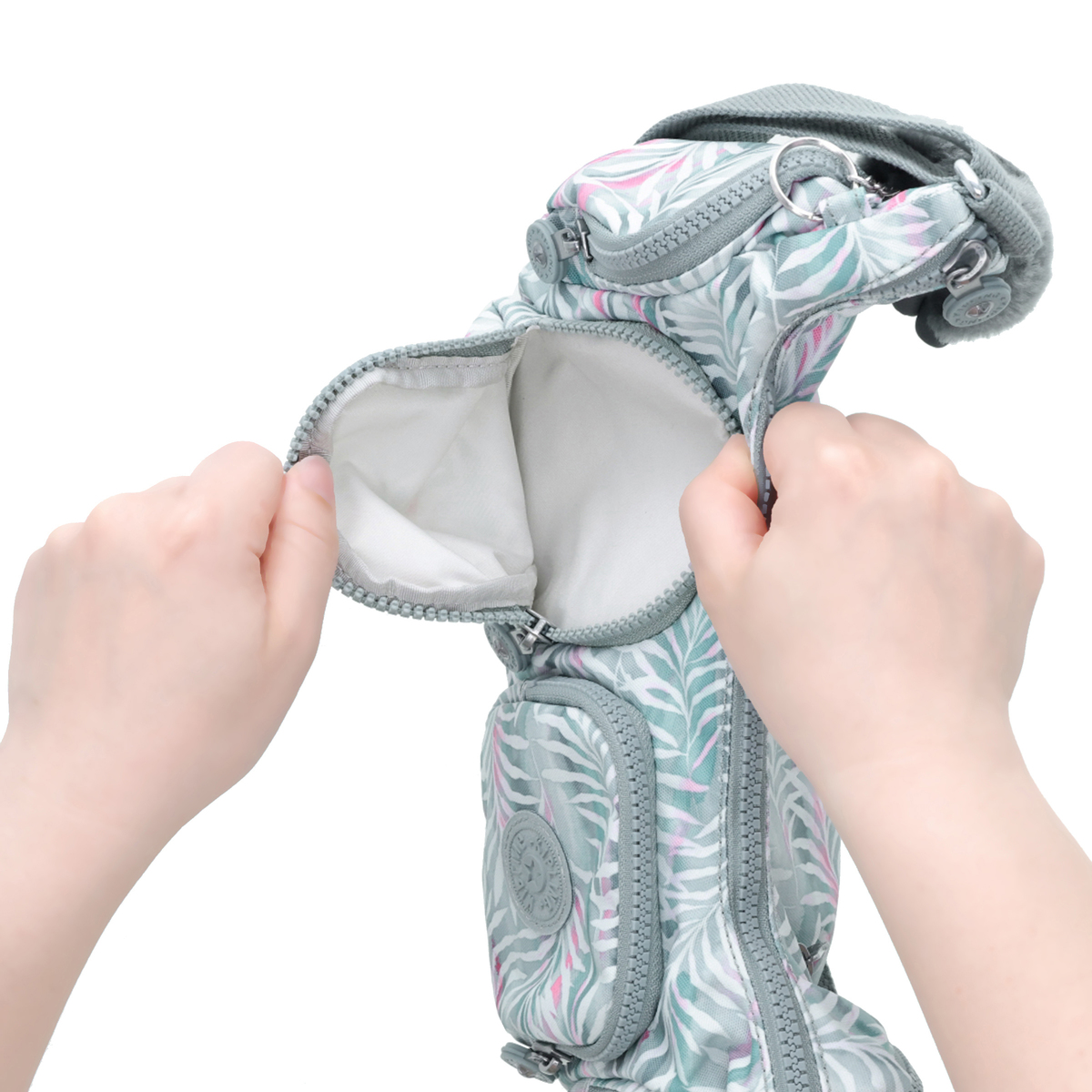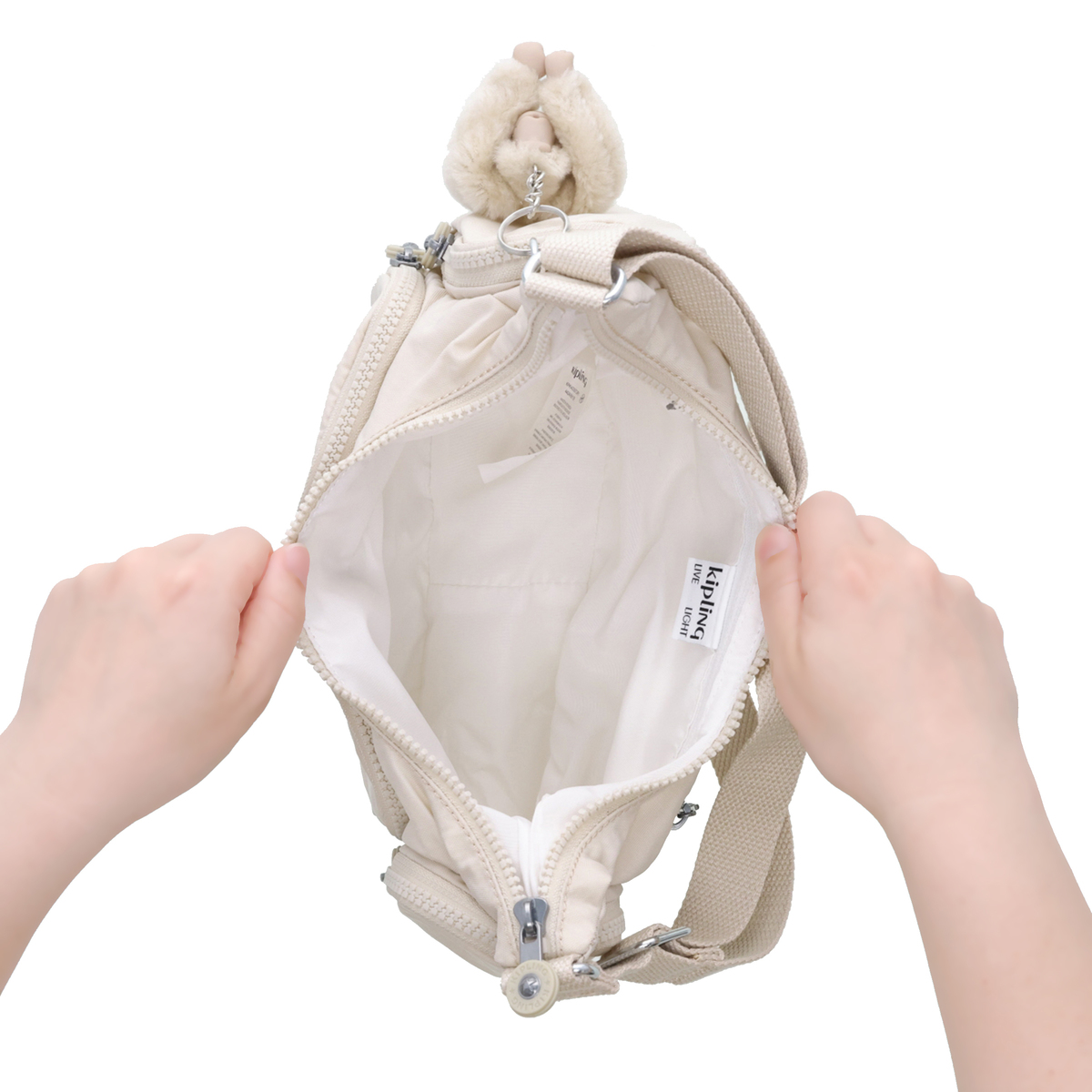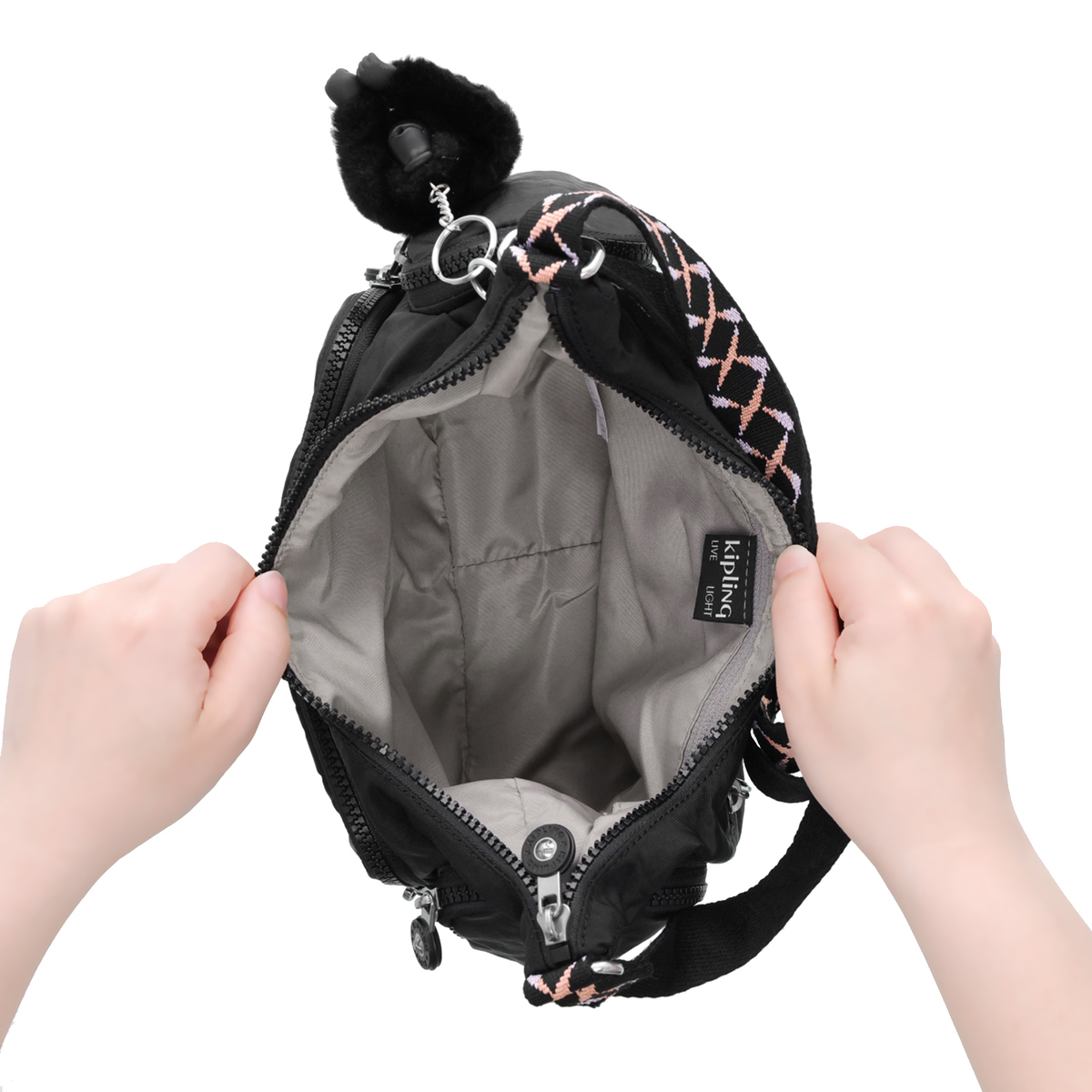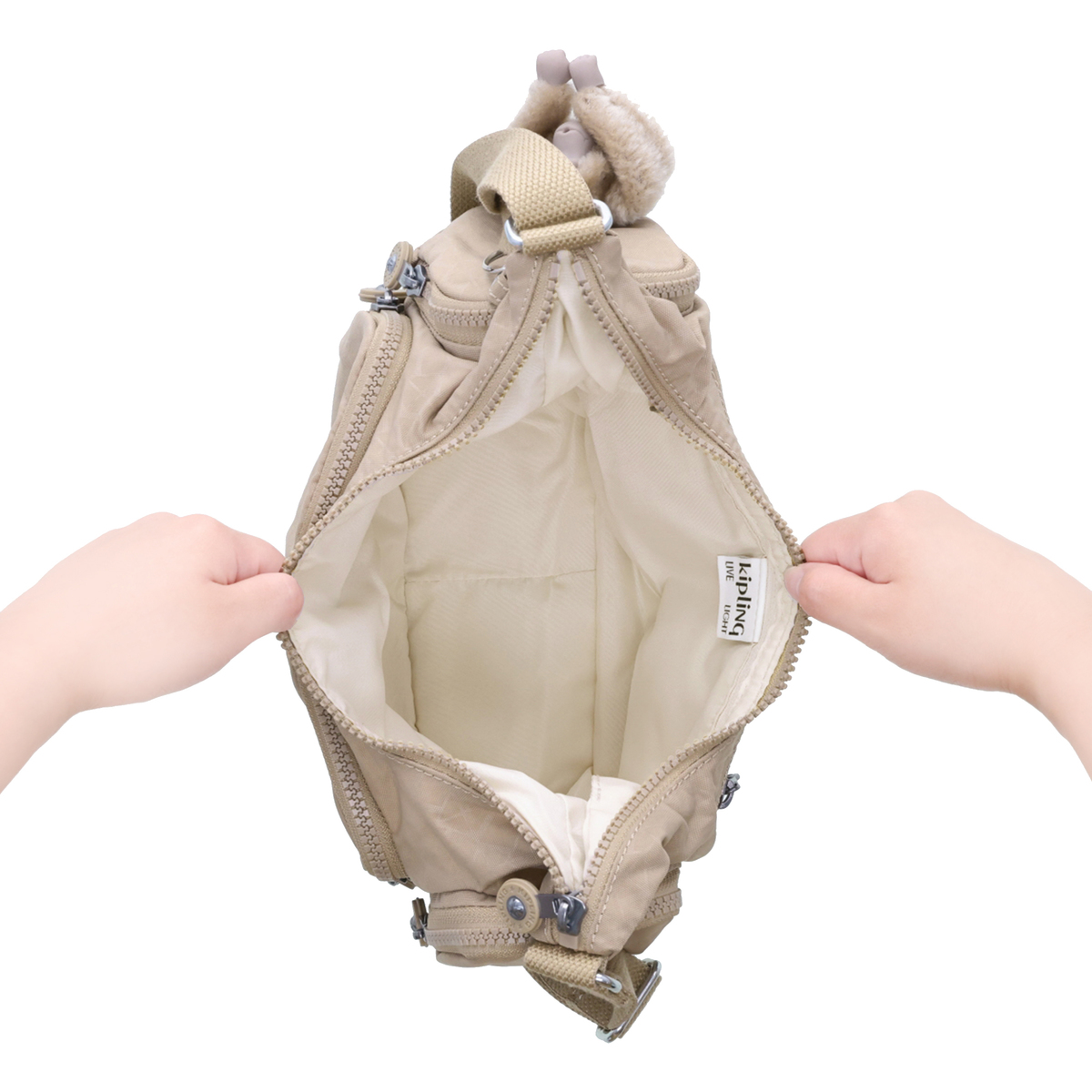 バッグのカラーごとに合わせた付属のモンキーチャームや裏地で、さりげない個性を演出。底部はクッション入りで、中身に関わらず型崩れしにくく、膝などに置く際にも衝撃を軽減します
