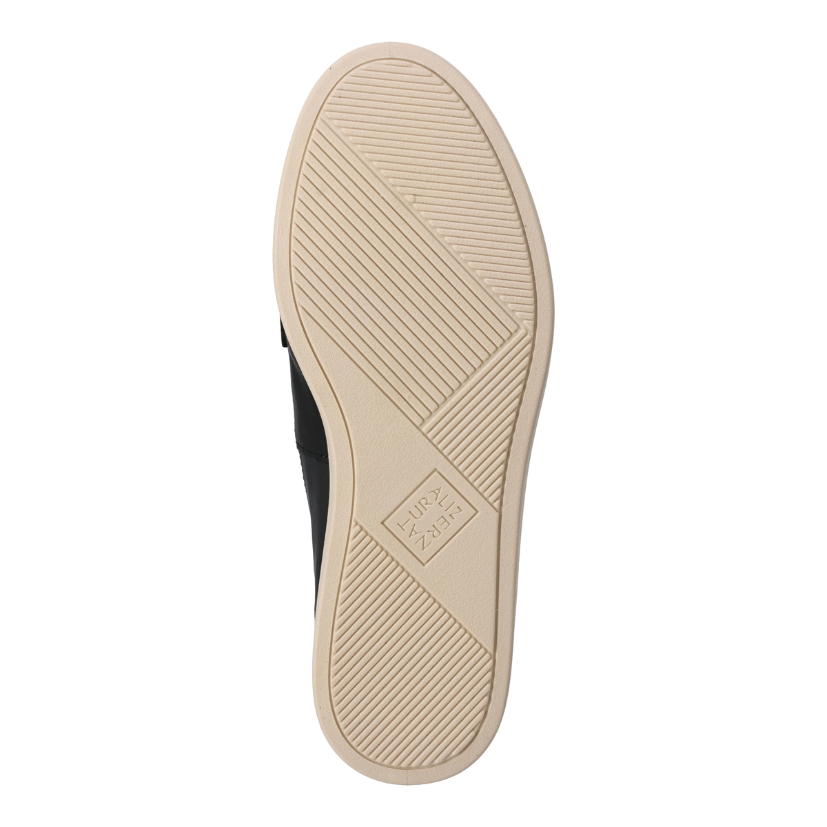 屈曲性、クッション性、耐久性、衝撃吸収性に優れ、あらゆる動きに対応するN Flexアウトソール。つま先はラウンドトウで、ワイド幅、約2.5cmのフラットフォームヒールです