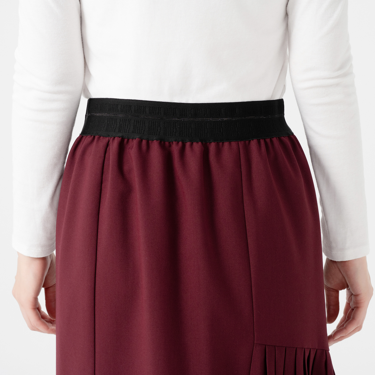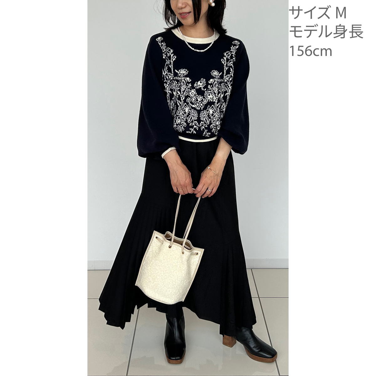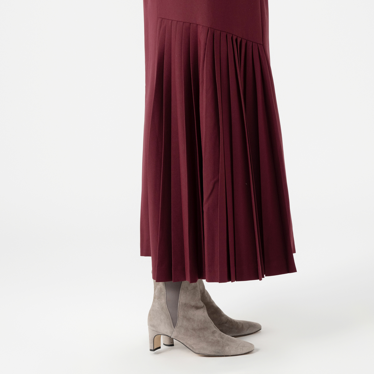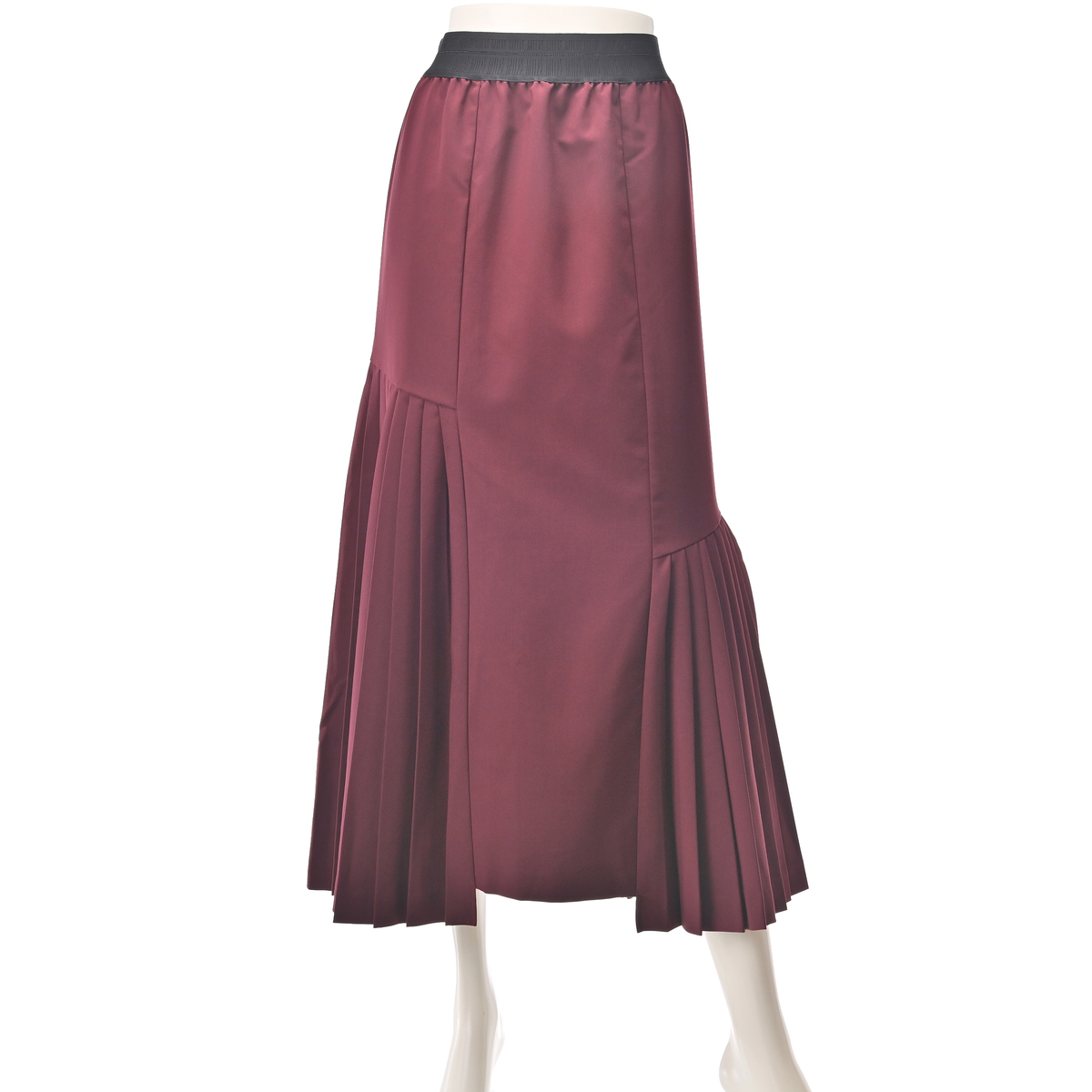 上品なフレアシルエットのスカート。腰周りはフラットにすっきりとさせ、両脇裾にプリーツを入れて変化をつけたデザインです。プリーツの太さもちょうどよく、縦のラインでの切り替えがシルエットをすっきりとみせ、幅にもこだわりました