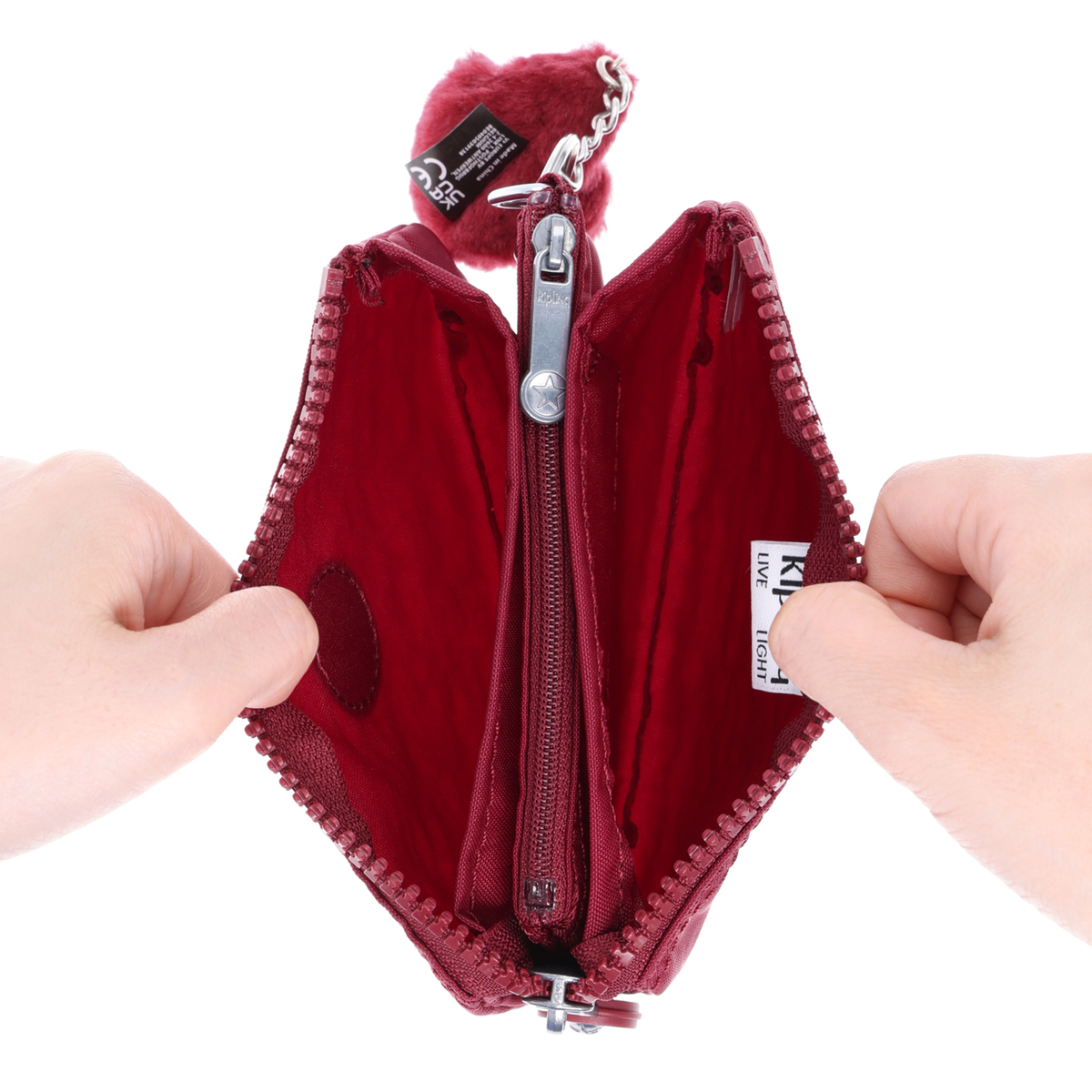 [サイズ(約)]縦10×横14.5×厚み4cm [重量])]※付属品含む 約50g [素材] ファンキーレッド、ベージュエンボス、ブルーブルー、マイルドローズ、グリーンエンボス、アルティメットプラム、ライトベージュ:ナイロン フラワーポルカ、スペクトラルオーキッド、3Dブルー:ポリエステル ※裏地無 [仕様] 付属(取り外し可):チャーム×1 開閉:ファスナー式 裏地:無 [ポケット] 内側:仕切り兼用ファスナーポケット×1、オープンポケット×2 外側:無 [注意事項] ※直射日光や蛍光灯の影響で変色する場合がありますのでご了承ください 【ファンキーレッド、ベージュエンボス、ブルーブルー、グリーンエンボス、フラワーポルカ、アルティメットプラム、ライトベージュ、スペクトラルオーキッド、3Dブルー:インドネシア製、マイルドローズ:カンボジア製】