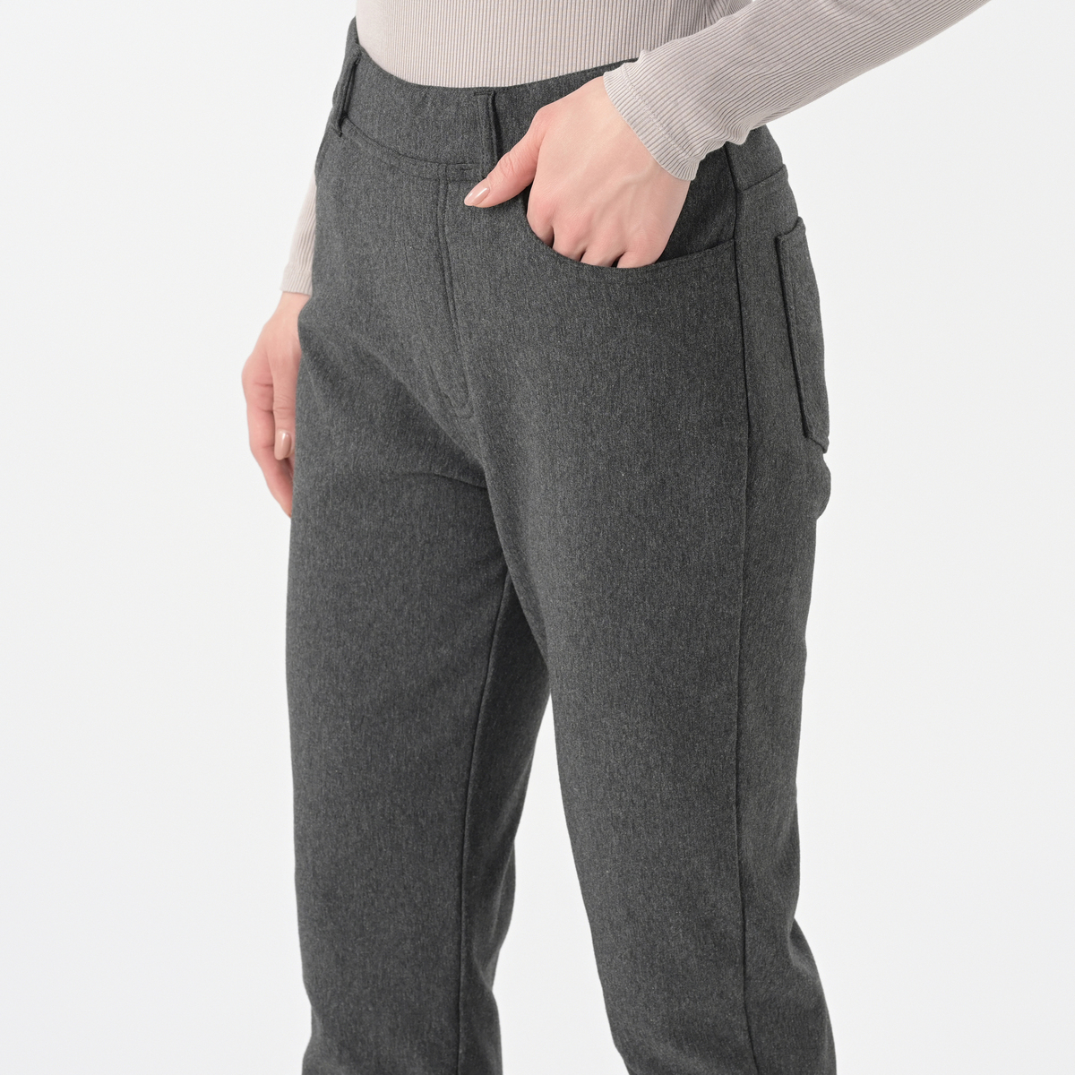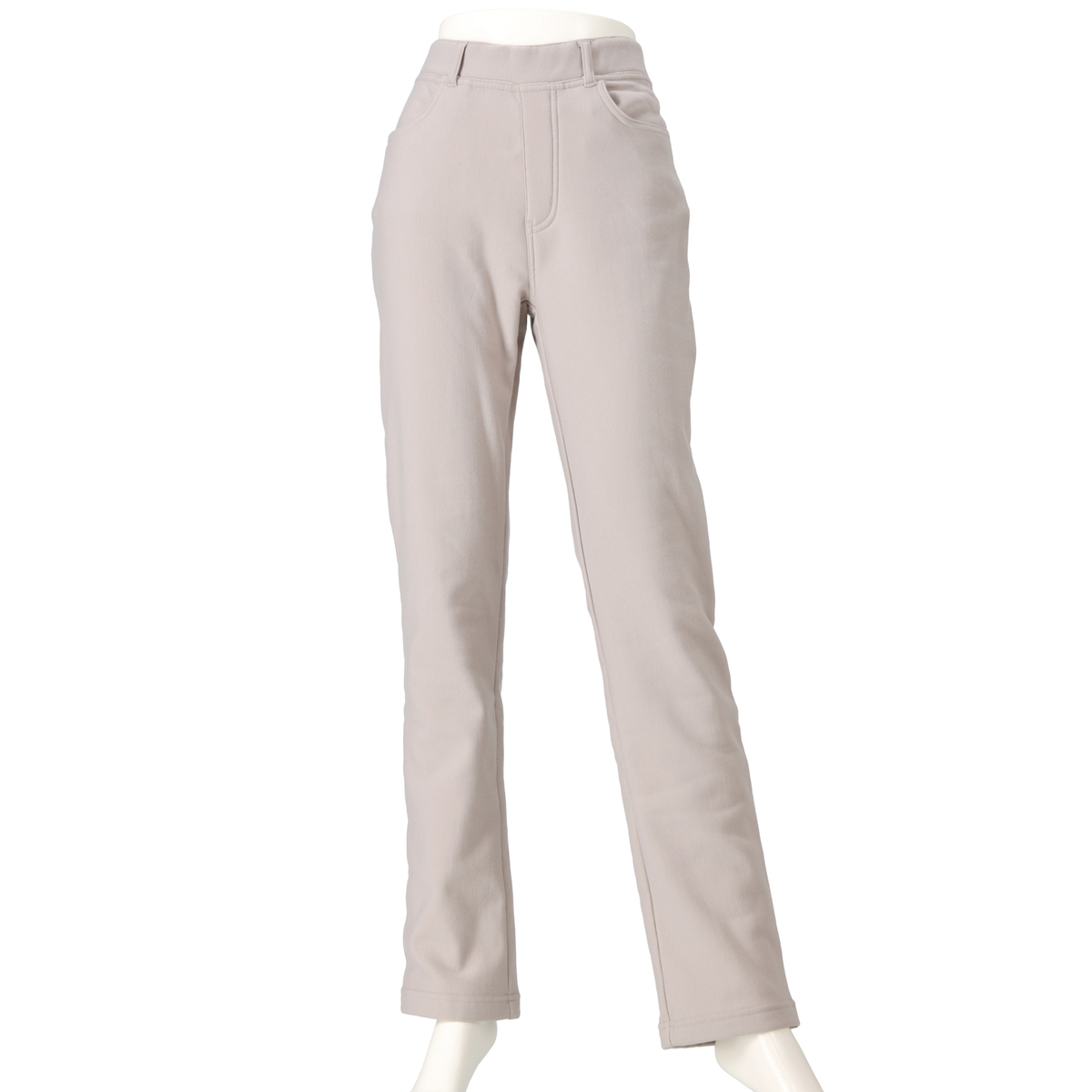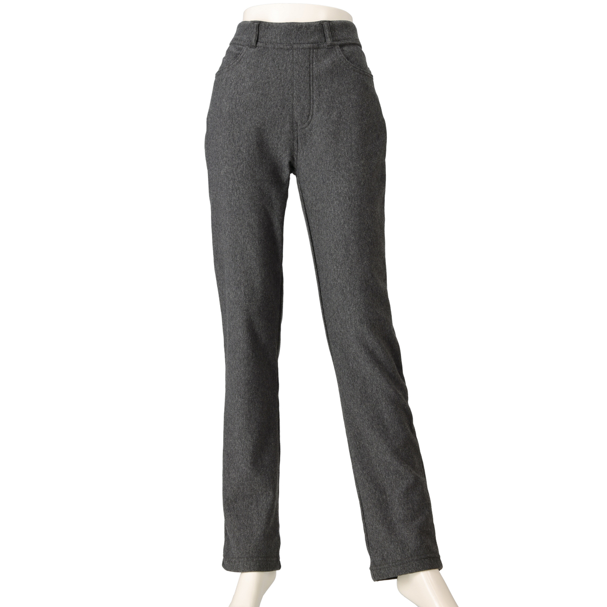 スリムストレートのすっきりシルエットに仕上げた、プルオンタイプのハイテンションパンツです。火山岩入りイージーウォームの蓄熱保温の裏起毛素材を使用。太陽光を吸収し、効率よく熱に変換することで暖かくなります