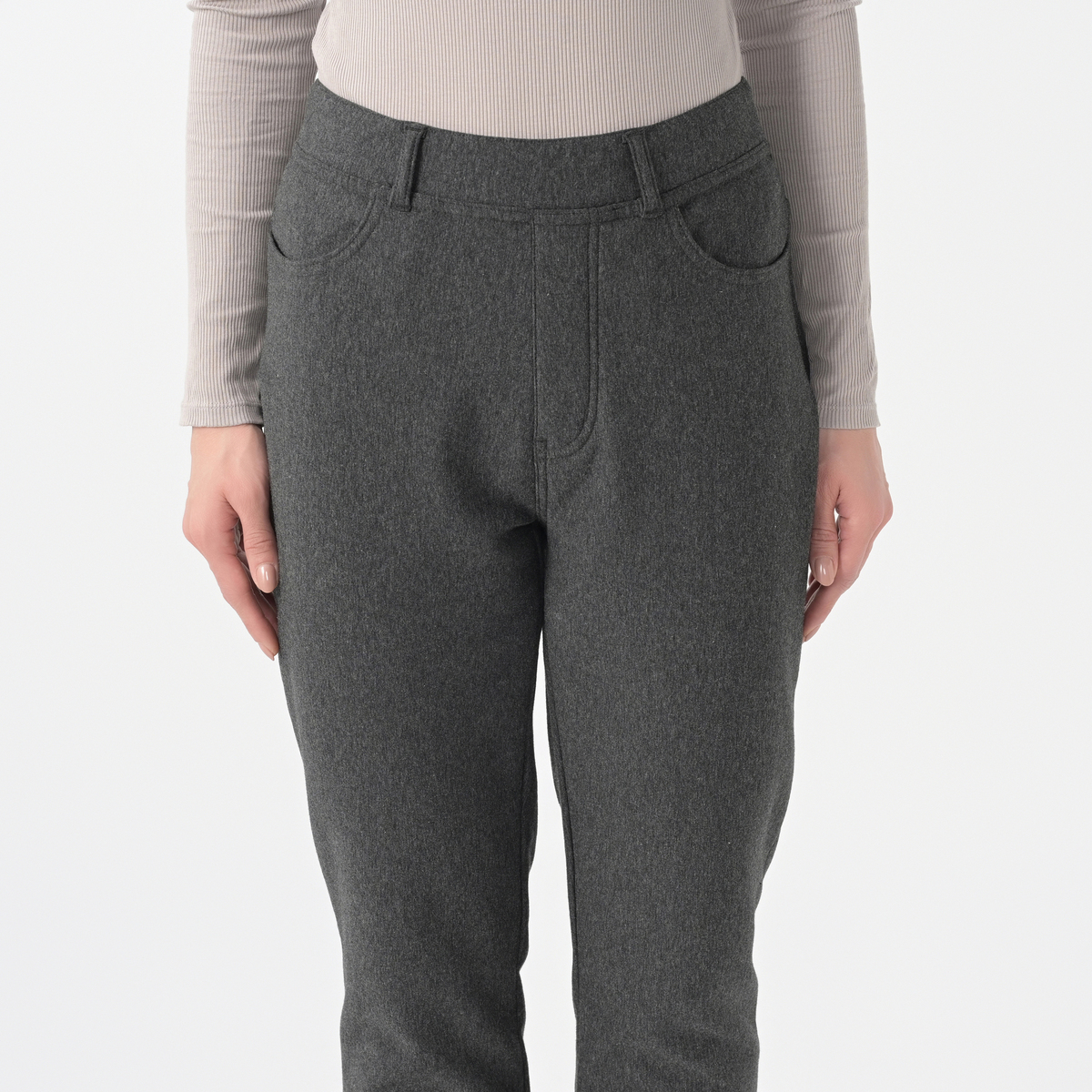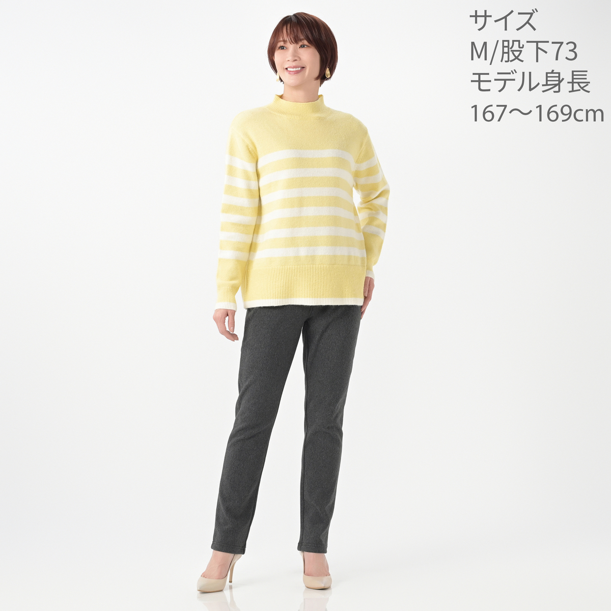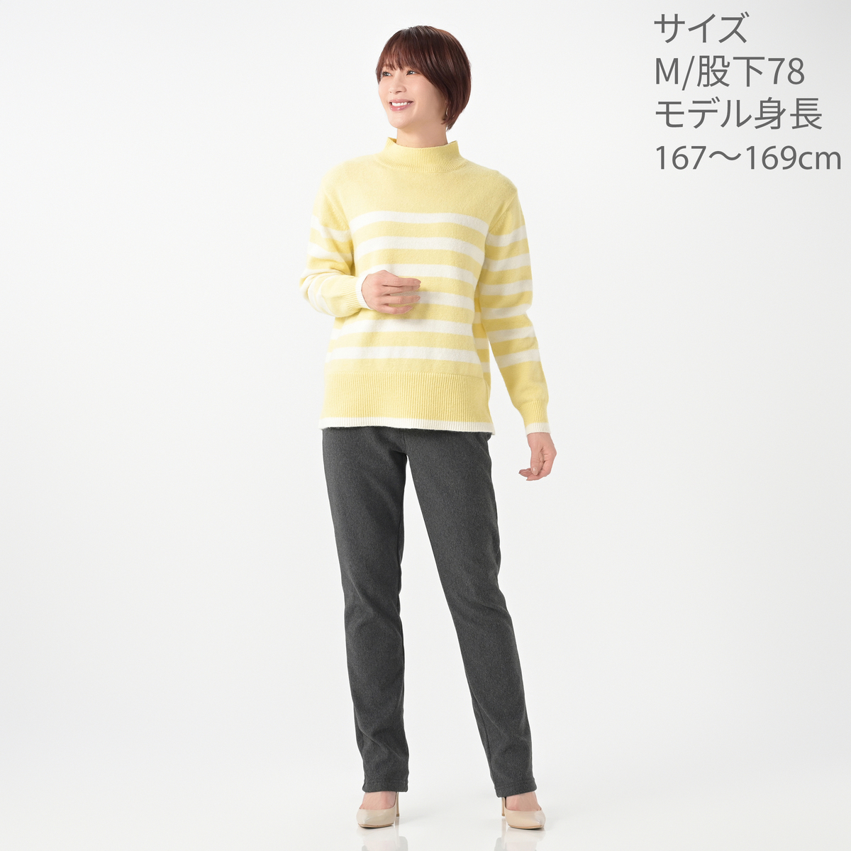 スリムストレートのすっきりシルエットに仕上げた、プルオンタイプのハイテンションパンツです。火山岩入りイージーウォームの蓄熱保温の裏起毛素材を使用。太陽光を吸収し、効率よく熱に変換することで暖かくなります