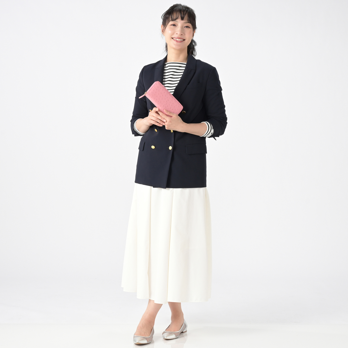 本体表面にオーストリッチ革、内側は牛革を使用したフルレザー仕立て。中も見やすく普段使いにぴったりです