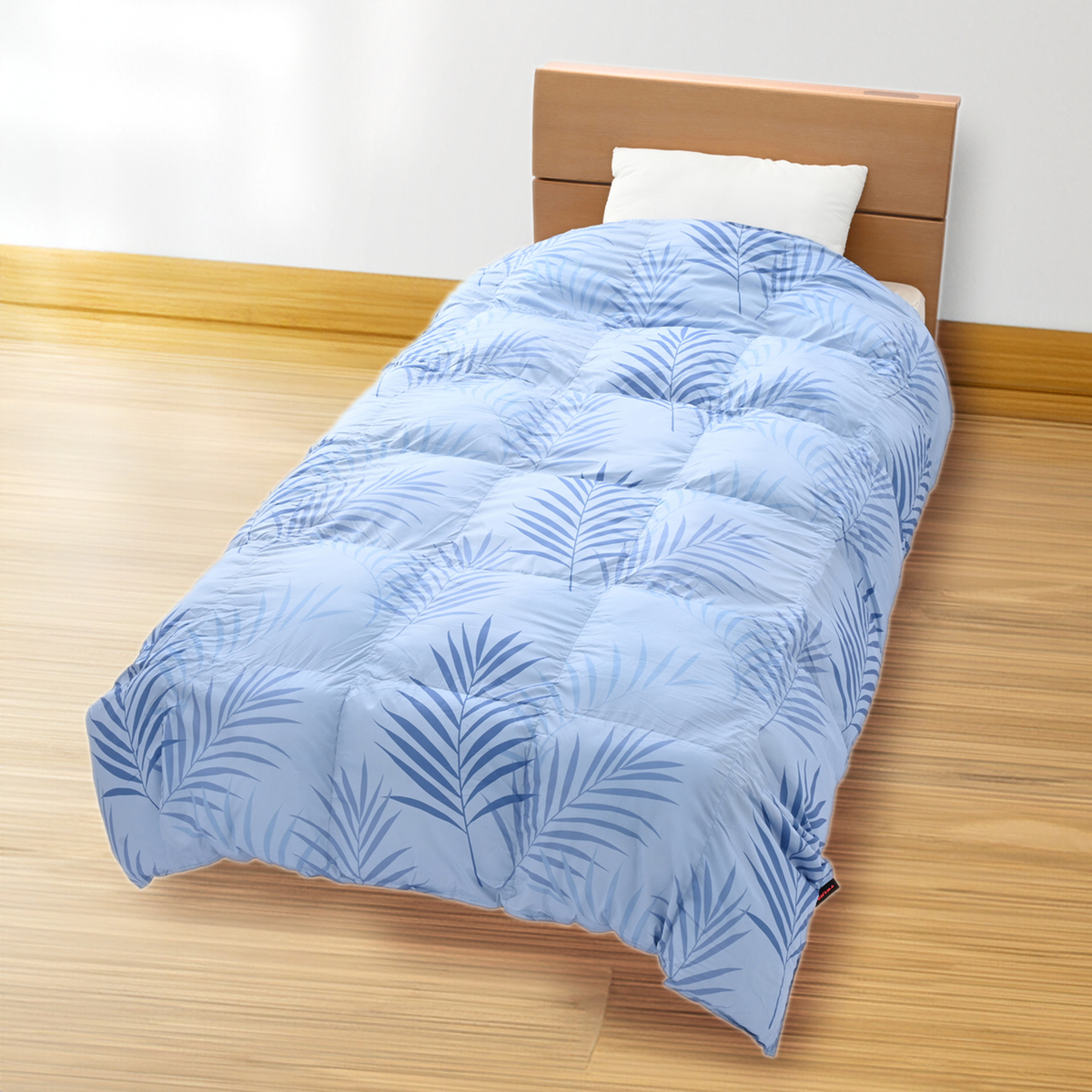 TEIJINの素材マイクロフラッフィーを中わたに使用した掛けふとん。マイクロフラッフィーはポリエステル素材のため、においが気になりにくく、芯がないので生地から飛び出しにくいのも魅力です