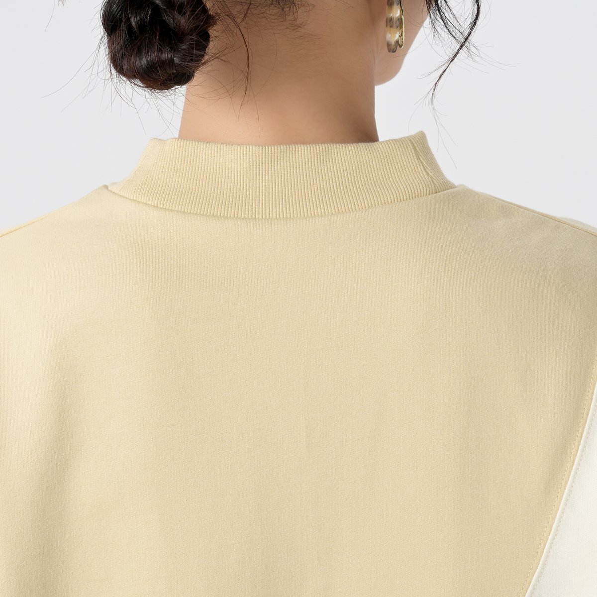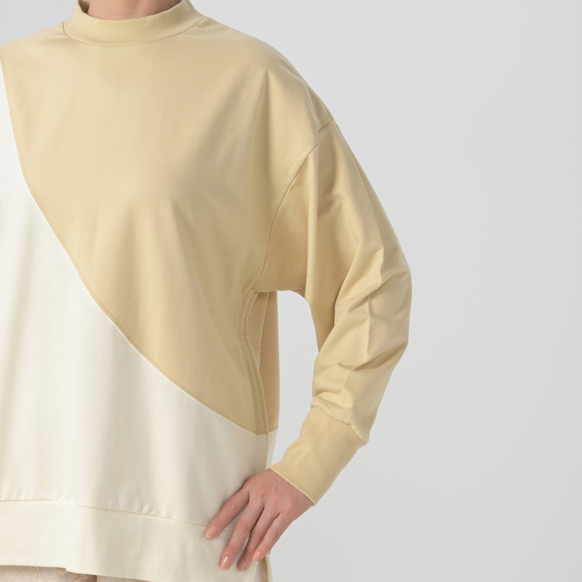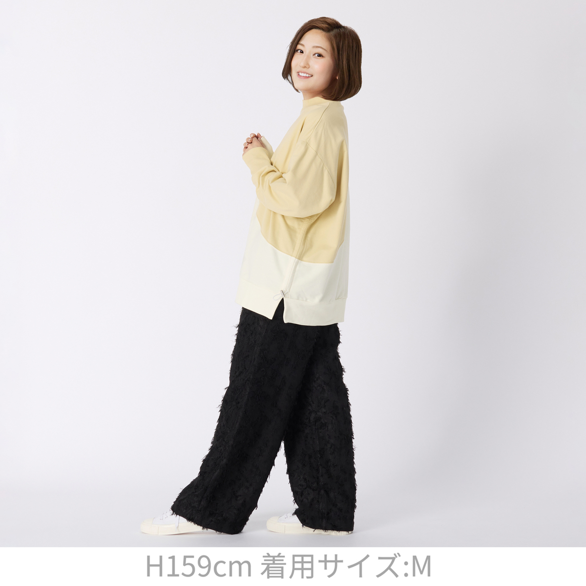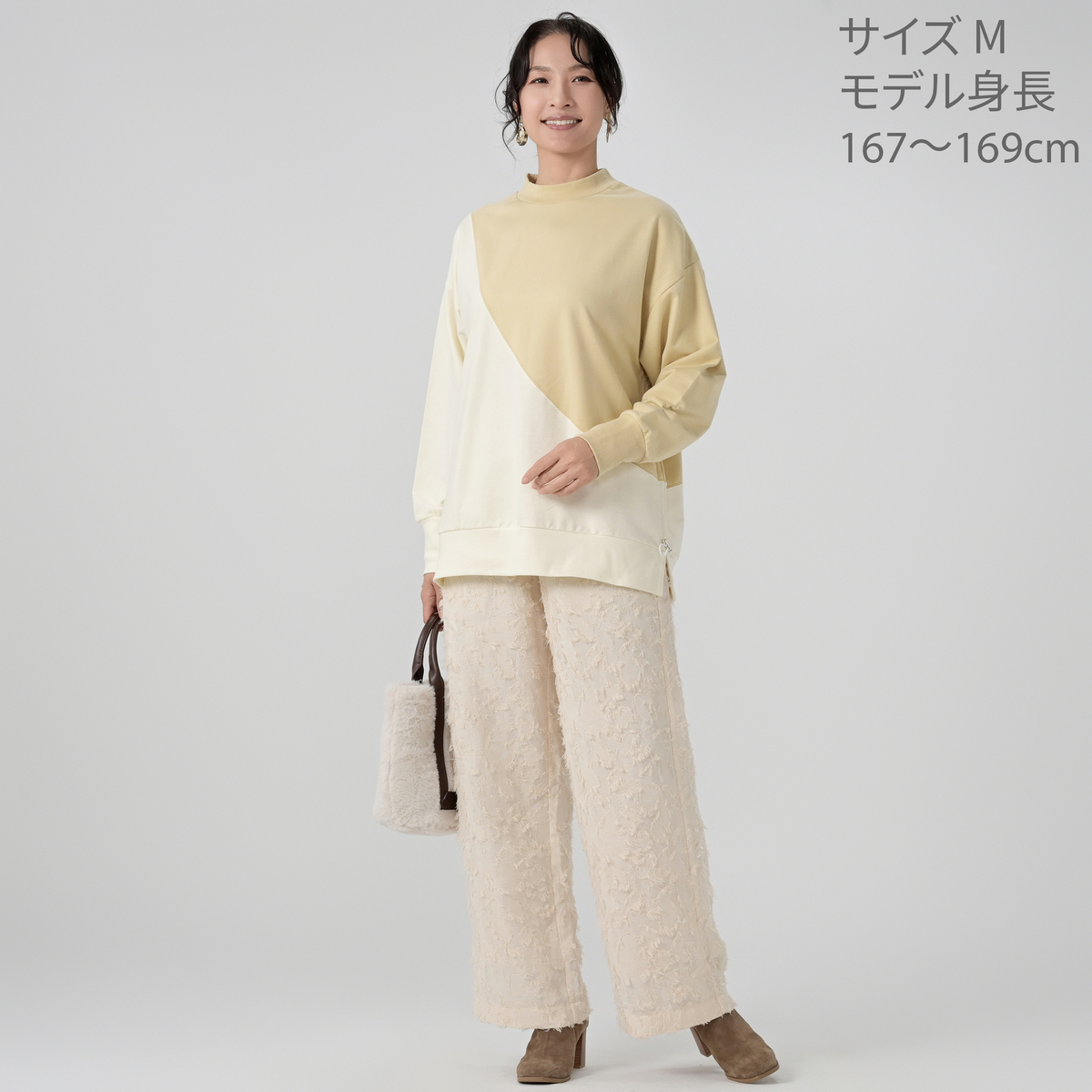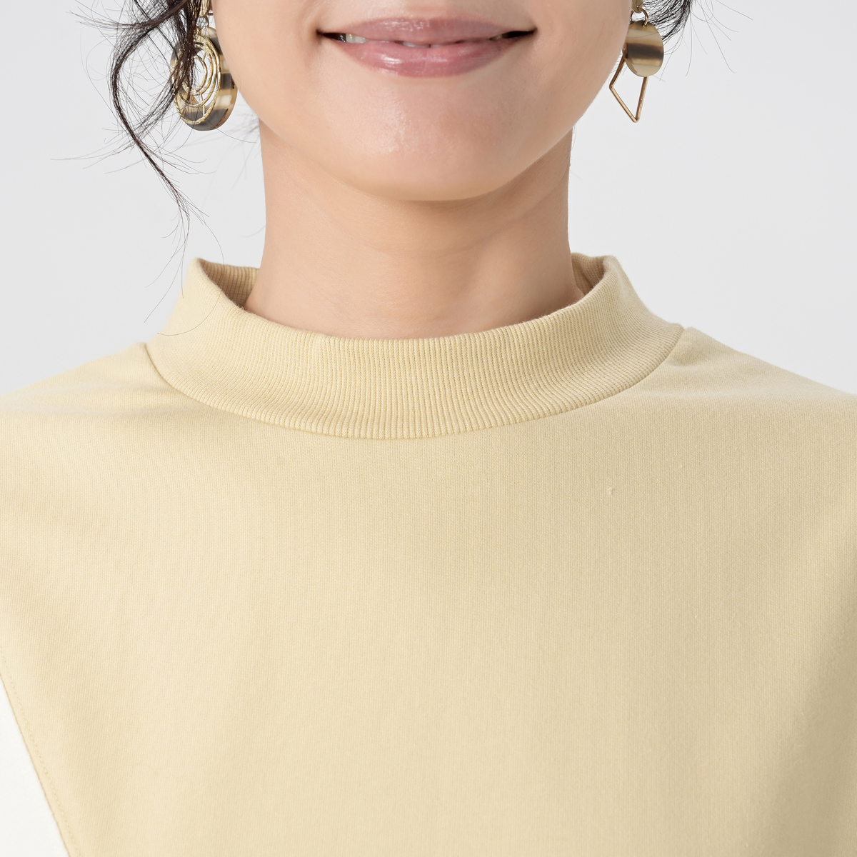 インレイ素材で仕上げたプルオーバー。大胆な配色が魅力で、主役級の存在感に。左脇のドロストで、表情を変えることもできます