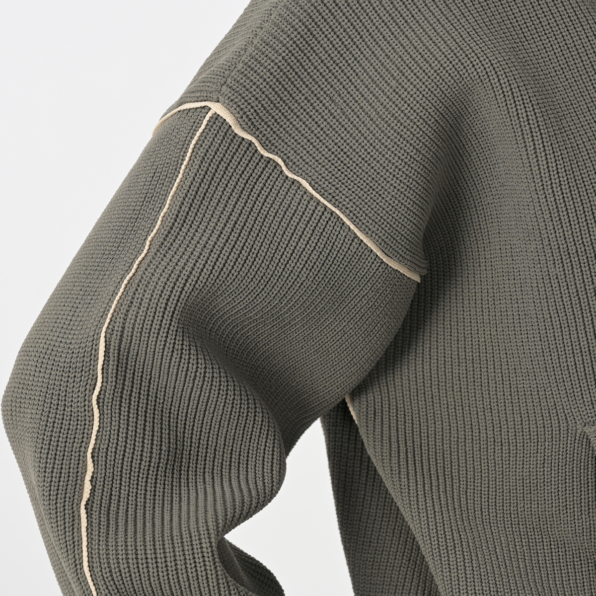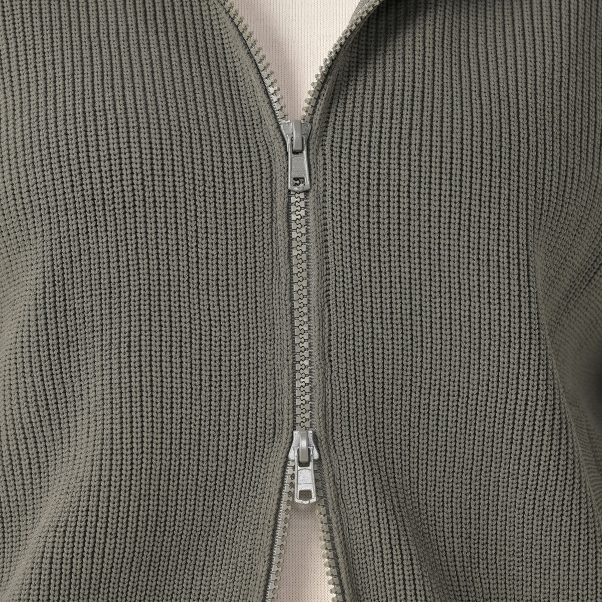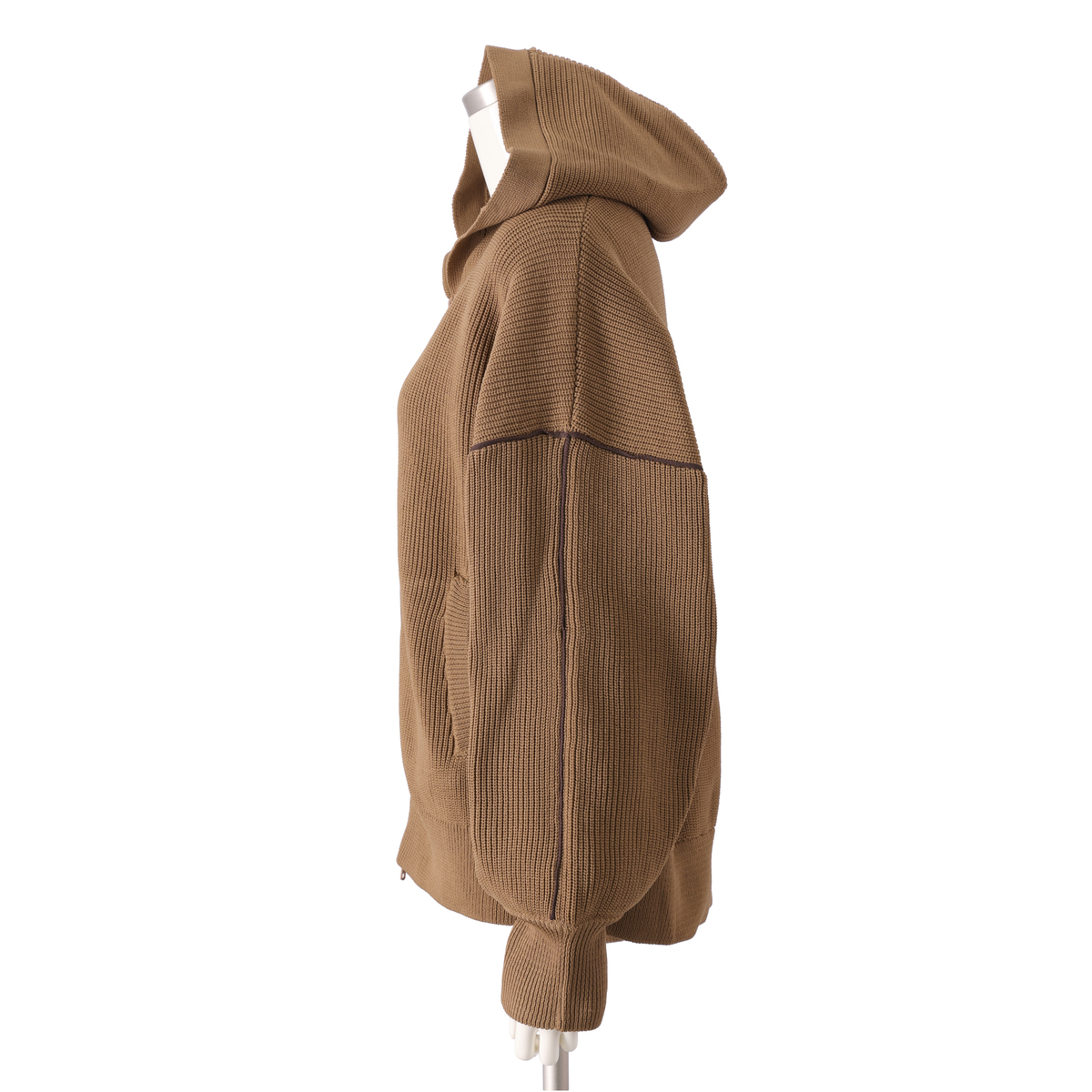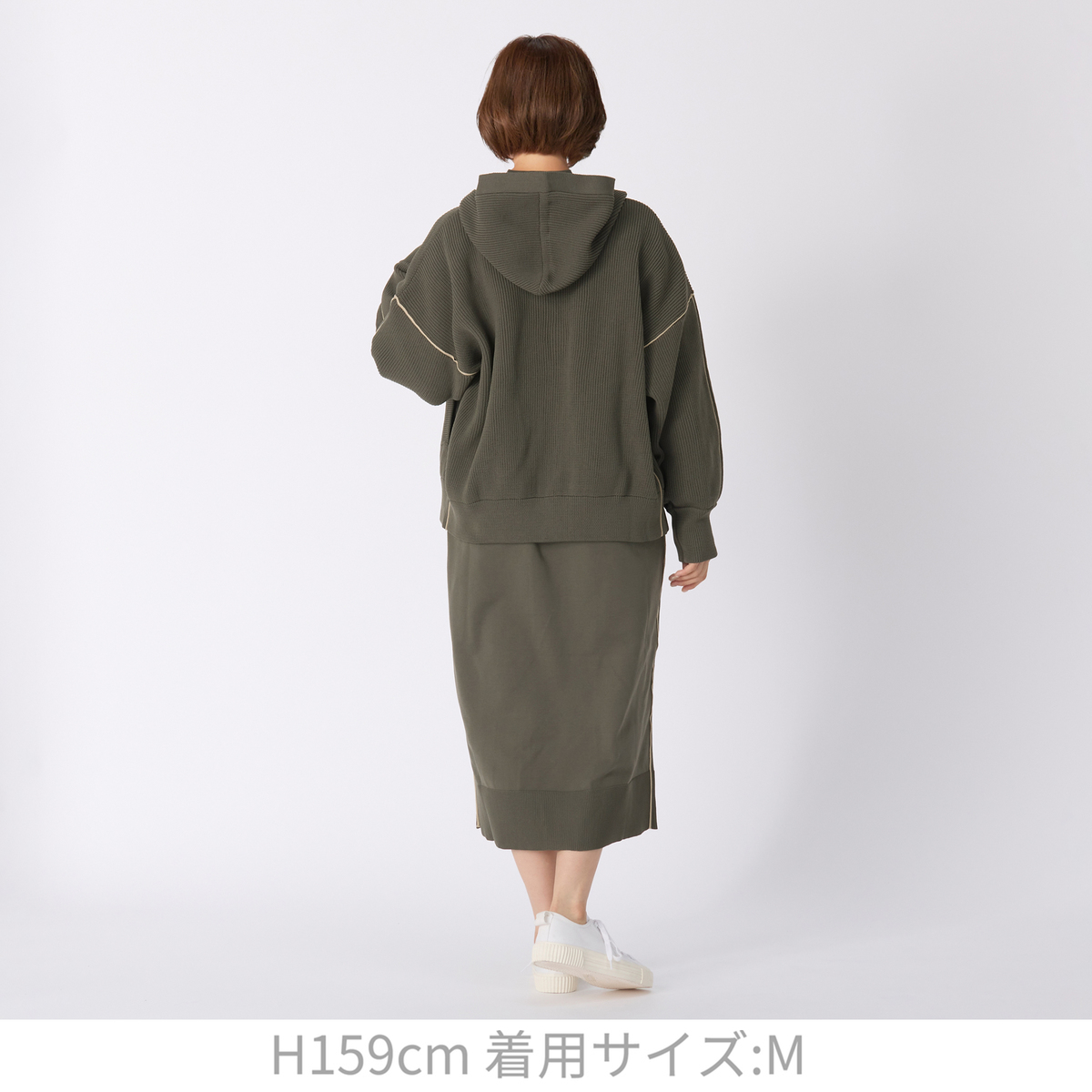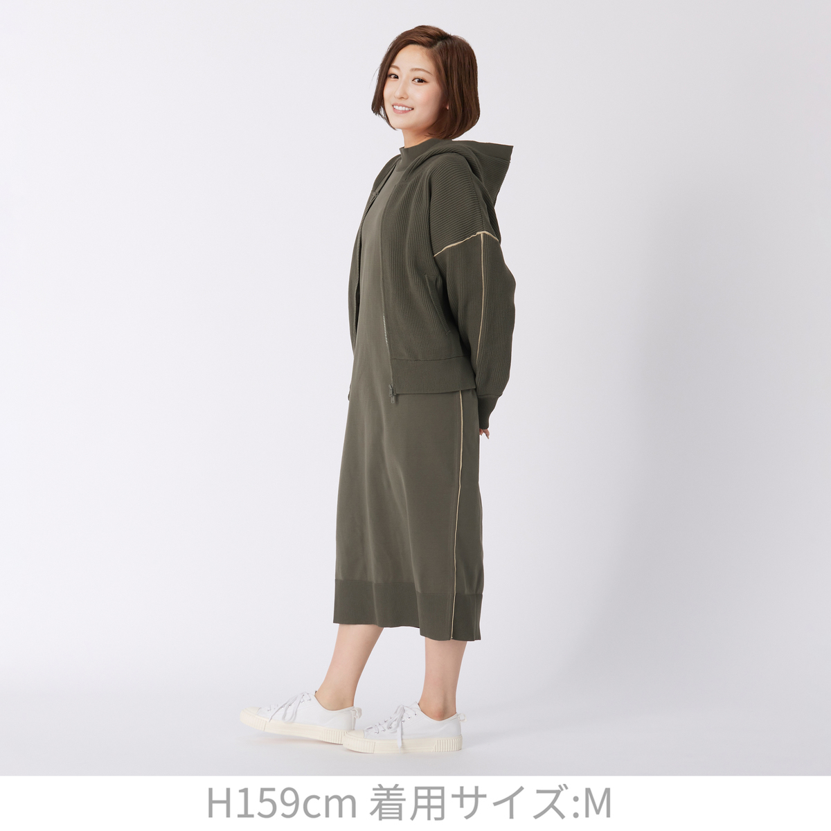 サッと羽織るだけで洗練されたスタイリングがきまる、ニットパーカーブルゾン。脇や袖に入れたリサイクル糸のラインが効いた、さりげないお洒落感溢れるデザインです。ダブルファスナーがこなれ感ある着こなしを叶え、自由に表情変化を楽しめます