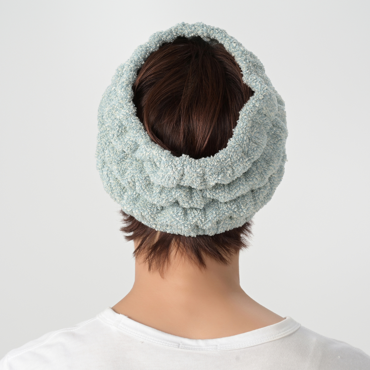 地の部分にマイクロファイバー繊維を使用することでしっかり水を吸水。お風呂上がりのタオルドライや洗顔、スキンケア時におすすめのターバン。幅が広いのでロングヘアもスッキリ収まります。本品には抗菌防臭加工を施しています