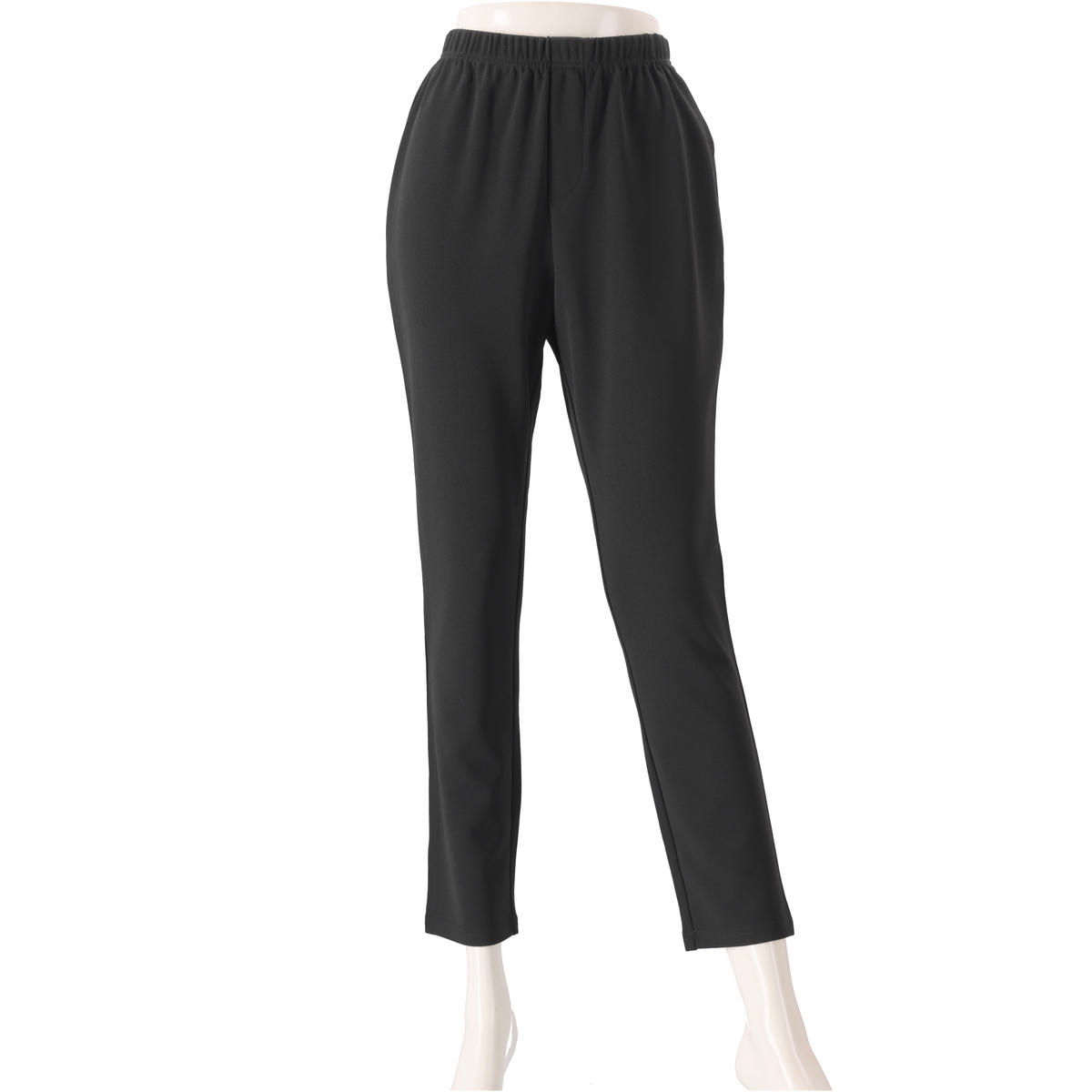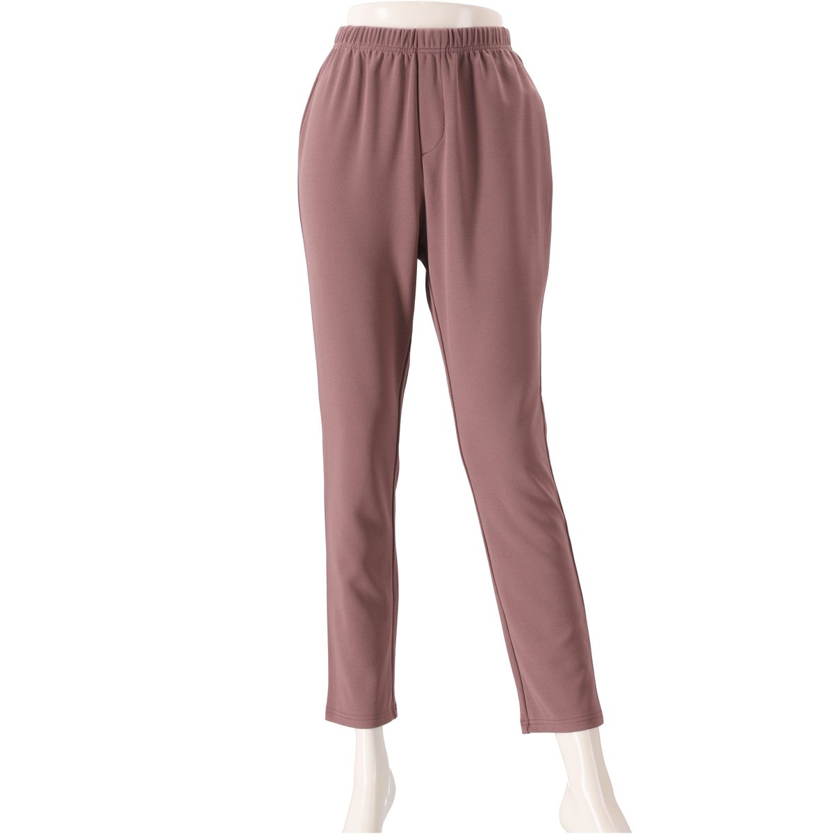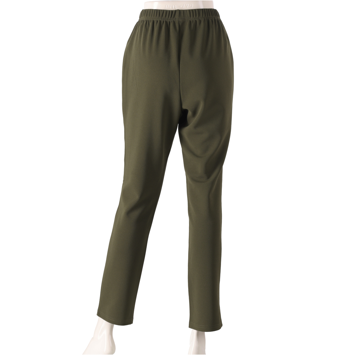 表面にしぼ感があり、縦・横に伸びるジョーゼットジャージーを使用。ウエストもゴム仕様でラクに穿けます