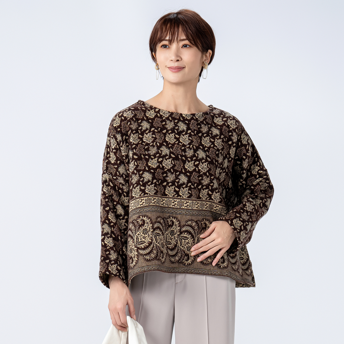 裏返すと地と模様の色が逆転するリバーシブルプルオーバー。1枚で2枚分楽しめる、お洒落で使い勝手のよいアイテムです