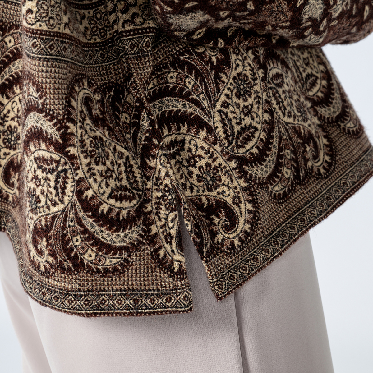 [商品寸法(ヌード寸法)cm] サイズ バスト 着丈 裄丈 MーL: 144(79〜94) 55.5 71 LLー3L: 152(93〜108) 57.5 74 [素材] アクリル 100% [お手入れ] 洗濯機洗い可 [注意事項] ※商品寸法の誤差は多少発生します。ご了承下さい ※蛍光増白剤配合洗剤使用禁止 ※アイロンは当て布使用 ※この製品はインド製の生地を使用しています。染め、織りむら等による粗野感と着心地を特徴とし、独特な(製品は1点1点多少表情が違います)色目、風合いを持っています ※水洗いにより多少色落ちする場合がありますので白物と分けてお洗い下さい。一度お洗い頂いてからのご使用をお薦め致します ※濡れたまま他の物と重ねておくと移染しますので洗濯後は形を整えて早めに干して下さい ※乾燥機のご使用はお避け下さい ※生成、染色商品には無蛍光洗剤をご使用下さい ※性質上、摩擦により毛羽立ち、毛玉が出来やすい商品です ※お洗濯により多少縮む場合があります。ご了承下さい ※アイロンは当て布を使用して下さい ※この商品は自然の風合を求めた特別な製品の為色むら織りむら等が製品の特性です ※生地の特性により縫い目の部分をご注意の上お取扱いください ※この製品は素材の特性上水分や汗、摩擦などにより色落ちすることがありますのでご着用の際は十分ご注意ください 【インド製】