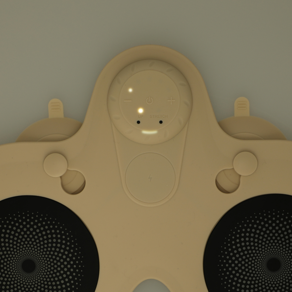 操作は簡単。ボタンは3つだけのシンプル設計で、EMSレベルは10段階です。2種類のEMSモードを搭載。UPモードはEMS低周波、STRETCHモードはEMS低、中、高周波。充電時間の目安は、充電約2時間で約4時間動作が可能です(*5)