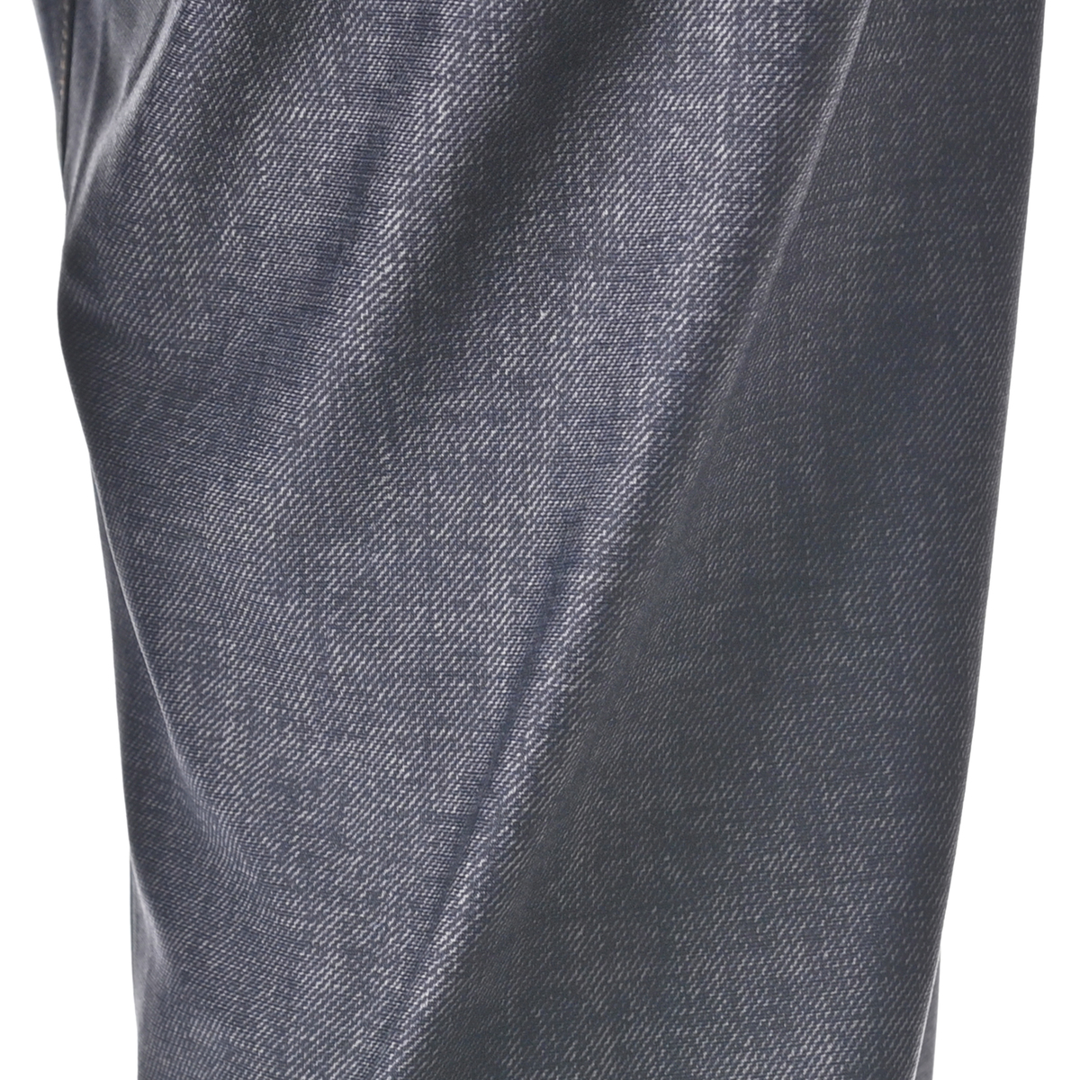 伸長回復率に優れ、安定したストレッチ性のあるタテ編みタイプのハイテンションニットを使用。ベースカラーを作りその上に転写プリントをしてリアルなデニム見えを追求しました。転写プリントは多色で複雑なデザインを布に表現しています