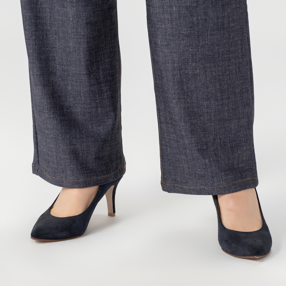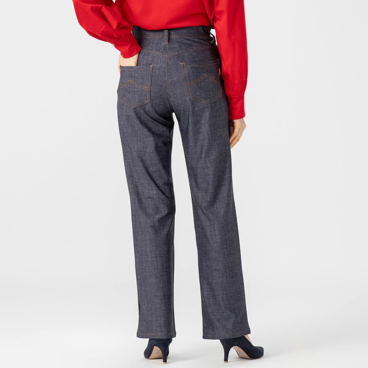 立体的パターンニングで穿き心地にこだわったデザイン。体のラインに沿うパターン設計で、お尻周りにもダーツを入れてより丸みのあるヒップラインを演出。落ち感を有効に活用したきれいなストレートラインです