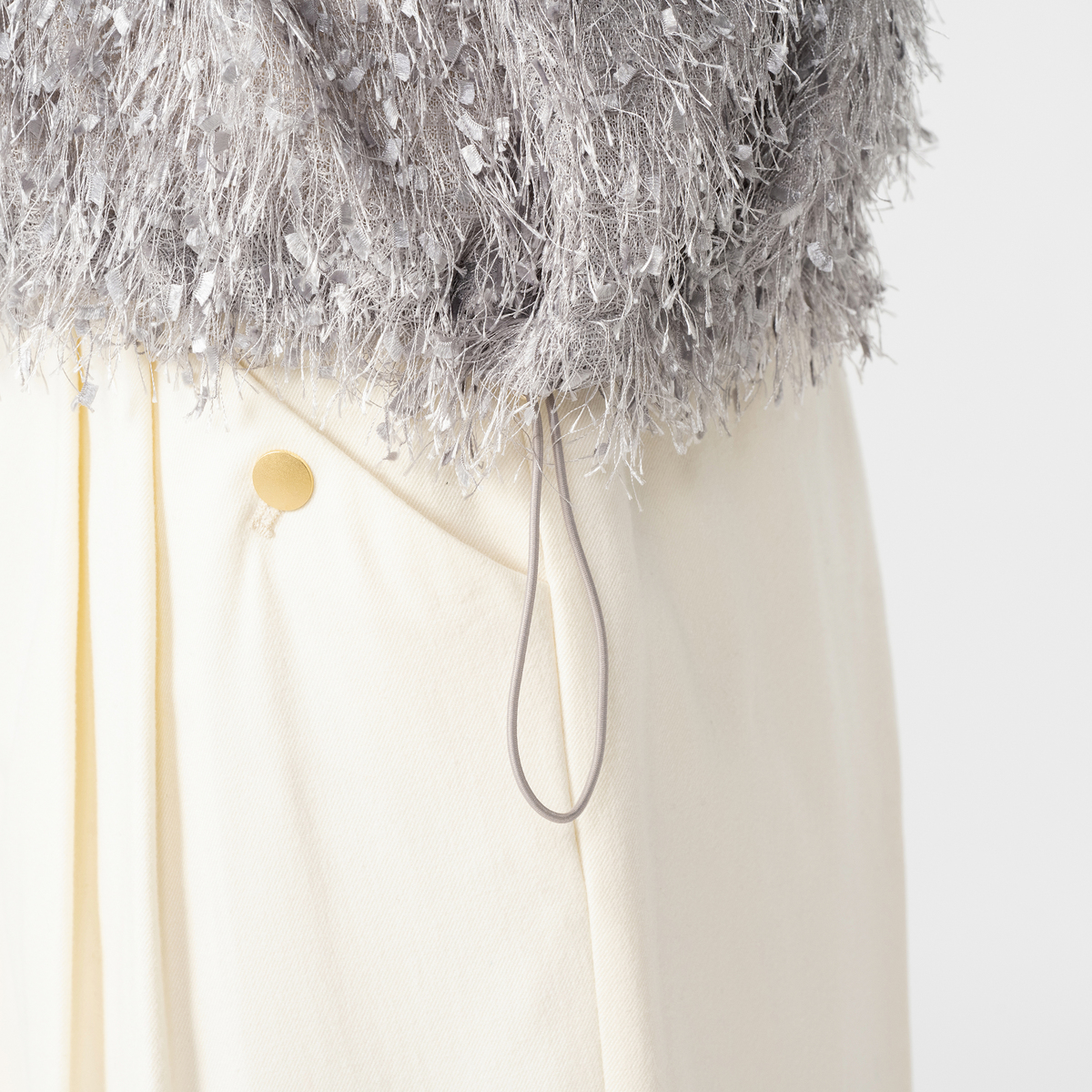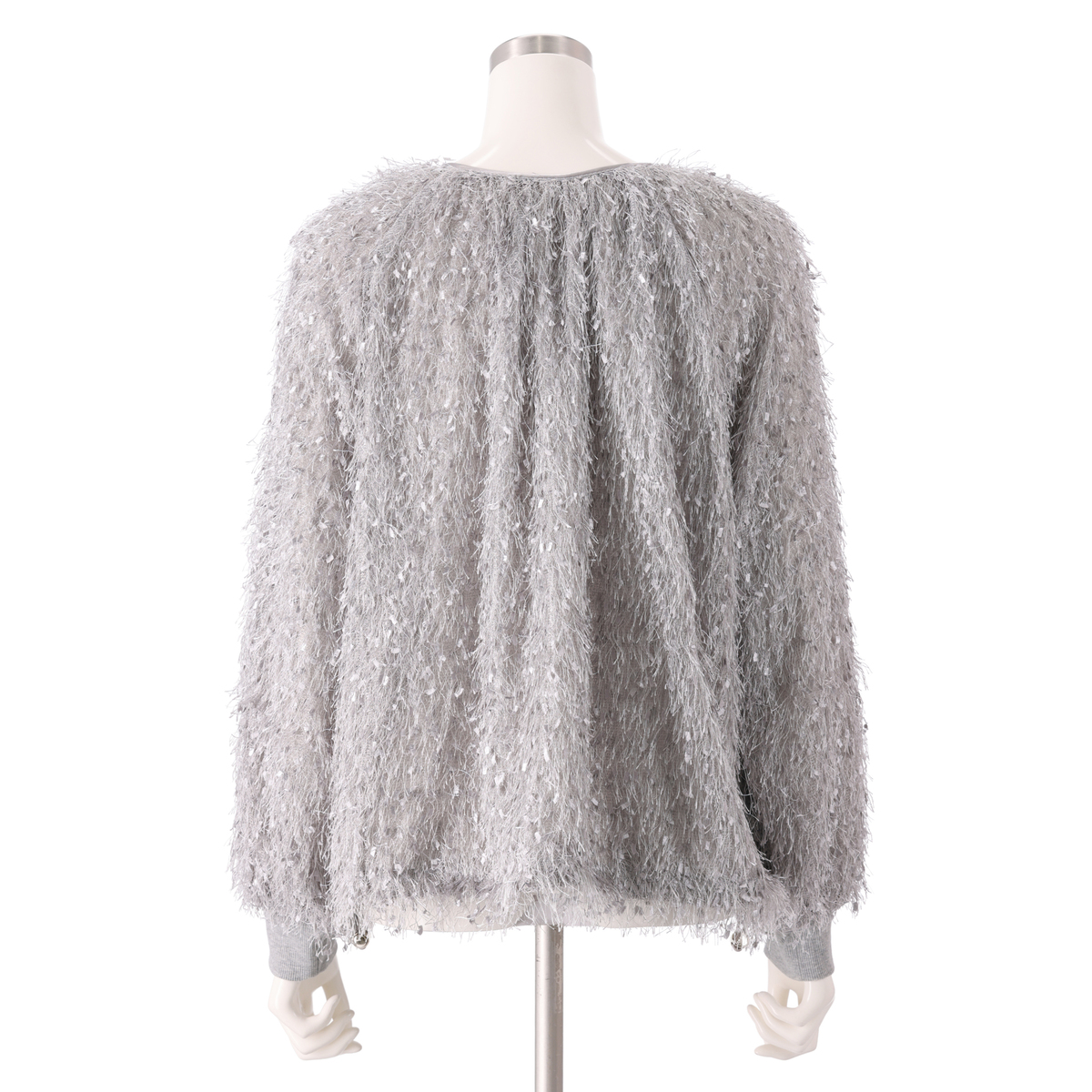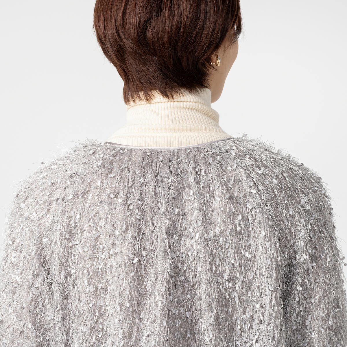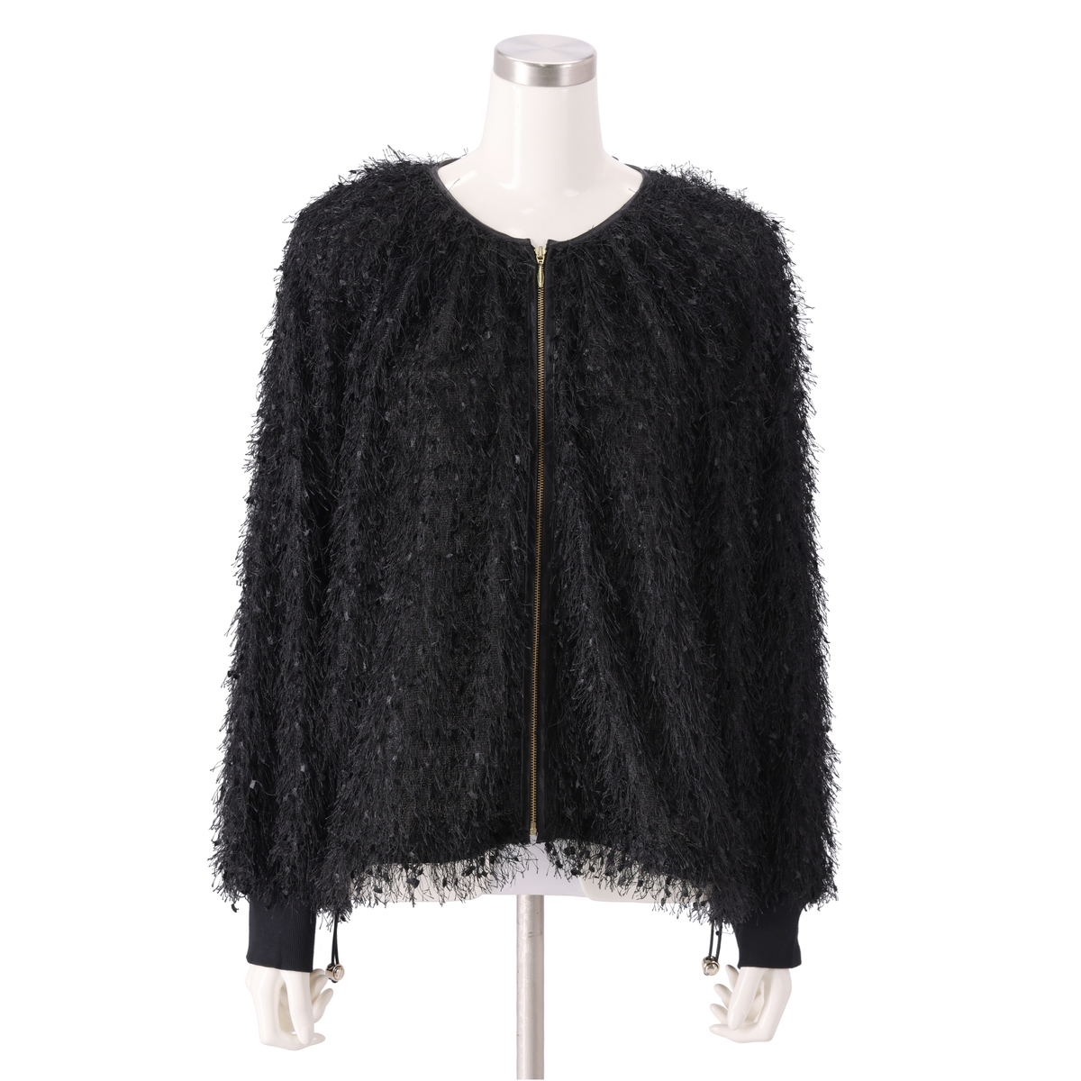 今シーズンのマストアイテム、フェザーヤーンを使用したブルゾンです。軽い着心地で、Tシャツの上にさっと羽織るだけでスタイリッシュなスタイリングが完成します