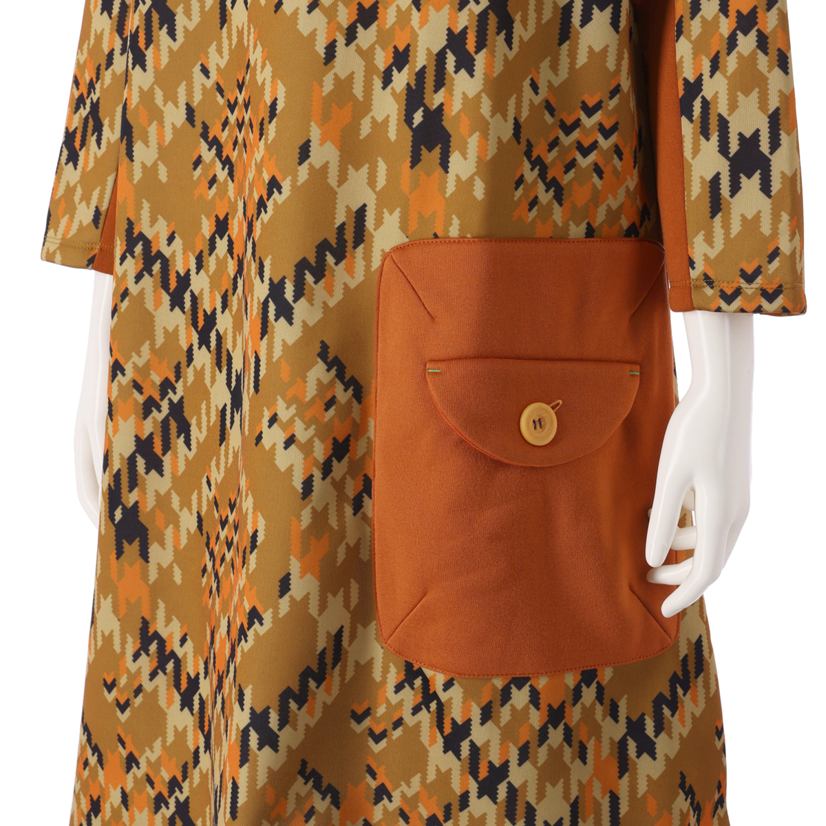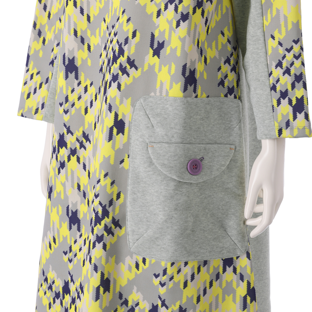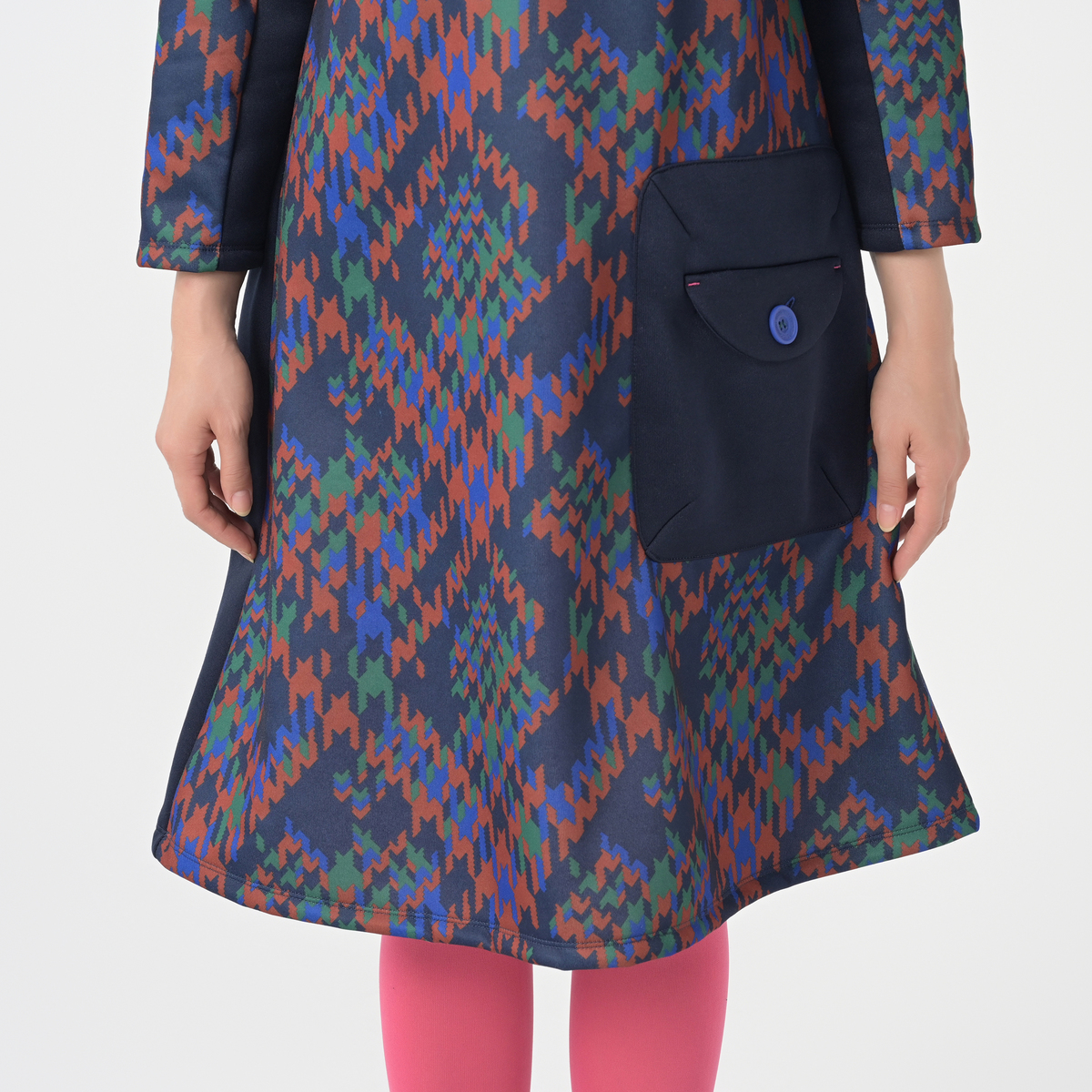 チェックをアレンジしたオリジナル柄プリントのワンピースチュニック。立体的で大きなポケットや配色のボタン使いが楽しく、一枚で着映えするSUPERLADYらしいデザインです。裏起毛のあたたかい素材で、ふんわり軽い着心地もお楽しみいただけます