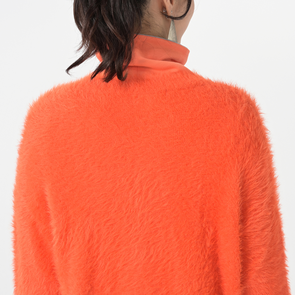 毛足の長いシャギー糸を使用。柔らかで暖かみがあり、寒い季節のコーディネートに活躍してくれます