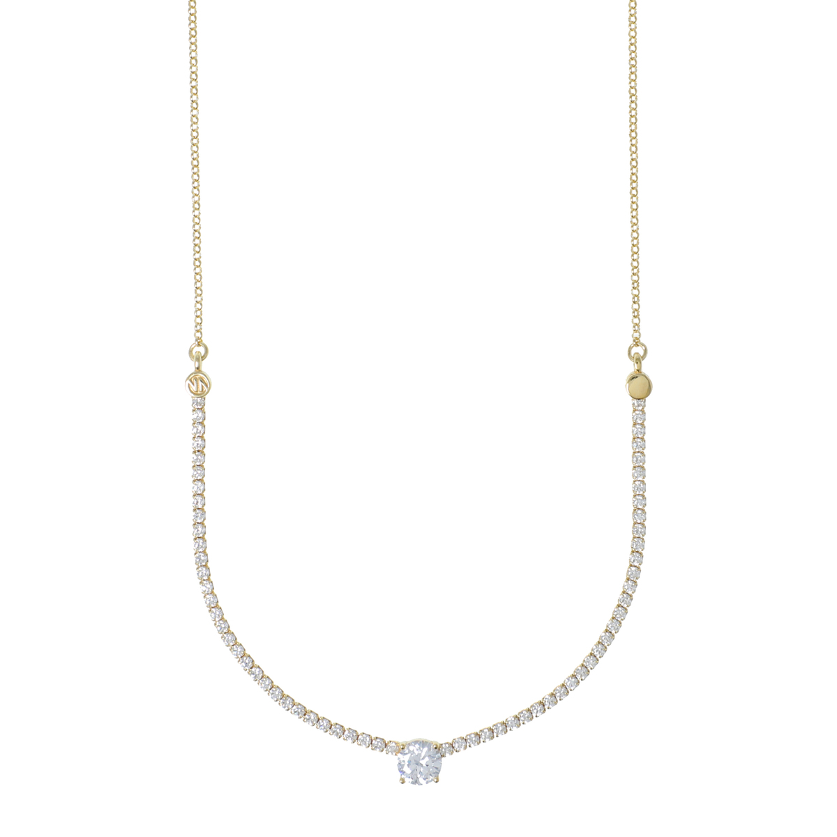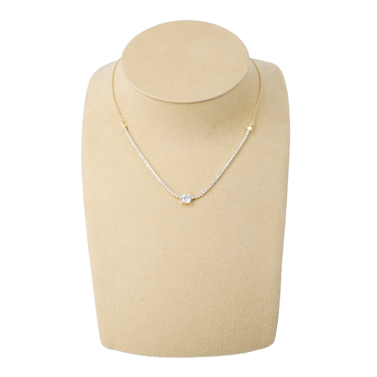 テニスネックレスと一粒石ペンダントを合わせたデザインネックレス。テニスネックレスのような、しなやかなキュービックジルコニアのラインをネックレスの中央部分にあしらっています