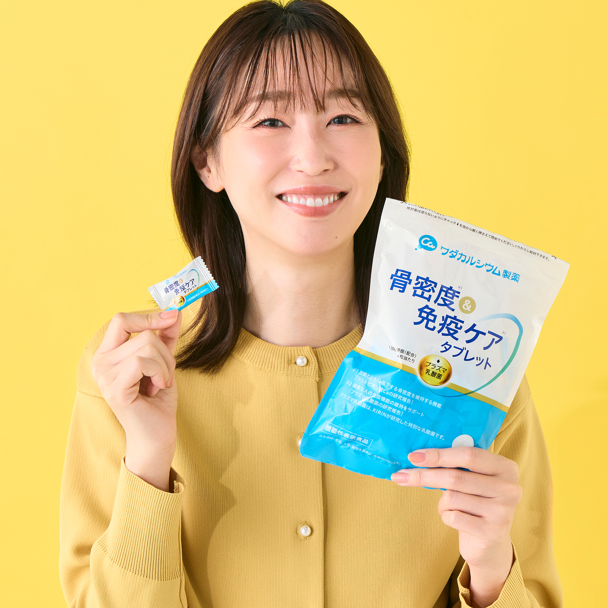 キリンホールディングス株式会社とワダカルシウム製薬株式会社の共同開発。機能性表示食品の機能性関与成分として、マルトビオン酸Ca、プラズマ乳酸菌の2つを配合して届出が受理されたのは「骨密度&免疫ケアタブレット」が日本で初めてです