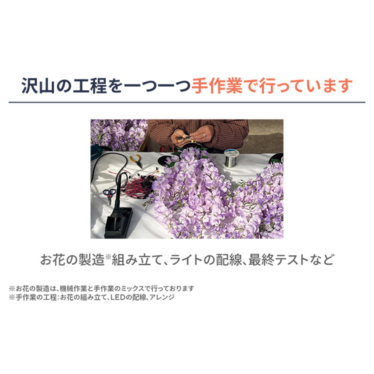 和にも洋にも合わせやすいアレンジで、お部屋を選ばず飾れるのも魅力です。お花の組み立て、LEDの配線、アレンジは手作業で行われています(*1)